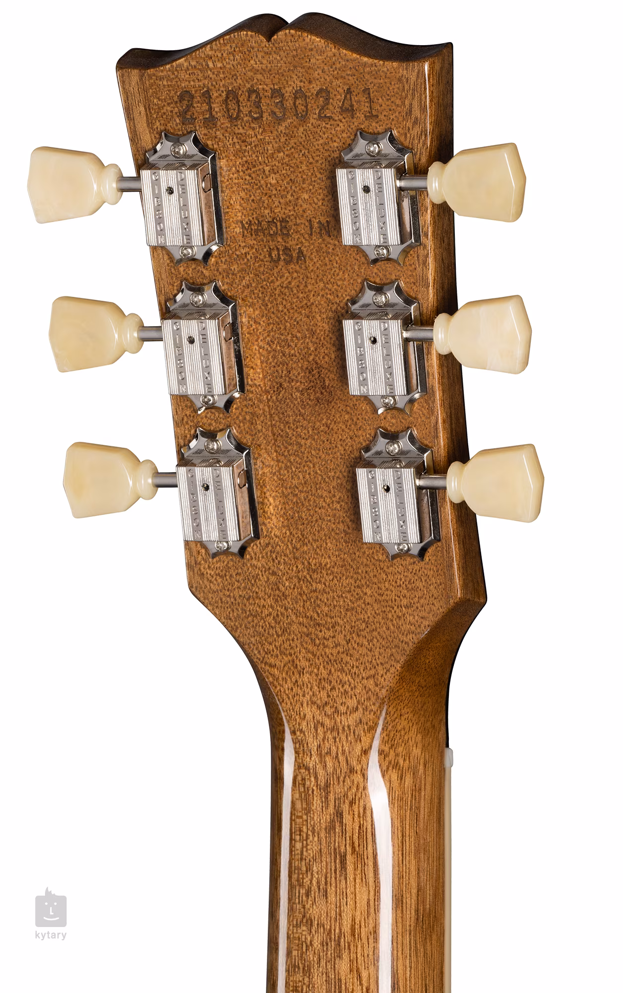 Deux micros humbuckers Burstbucker 1 et 2 avec aimants Alnico 2 et sortie basse/médium offrent le son et la sensation des légendaires micros PAF vintage de Gibson. Les micros sont soudés à la main aux potentiomètres de volume et de tonalité et aux condensateurs "orange drop". Vous pouvez passer d'un micro à l'autre à l'aide d'un commutateur à trois positions. La stabilité de l'accordage est assurée par le montage des cordes à travers le chevalet ABR 1 Tune-O-Matic dans les longerons et à travers la frette zéro Graphtech dans les mécaniques Vintage Deluxe avec les chevilles Keystone. Le design élégant de l'instrument est accentué par un accastillage en nickel.