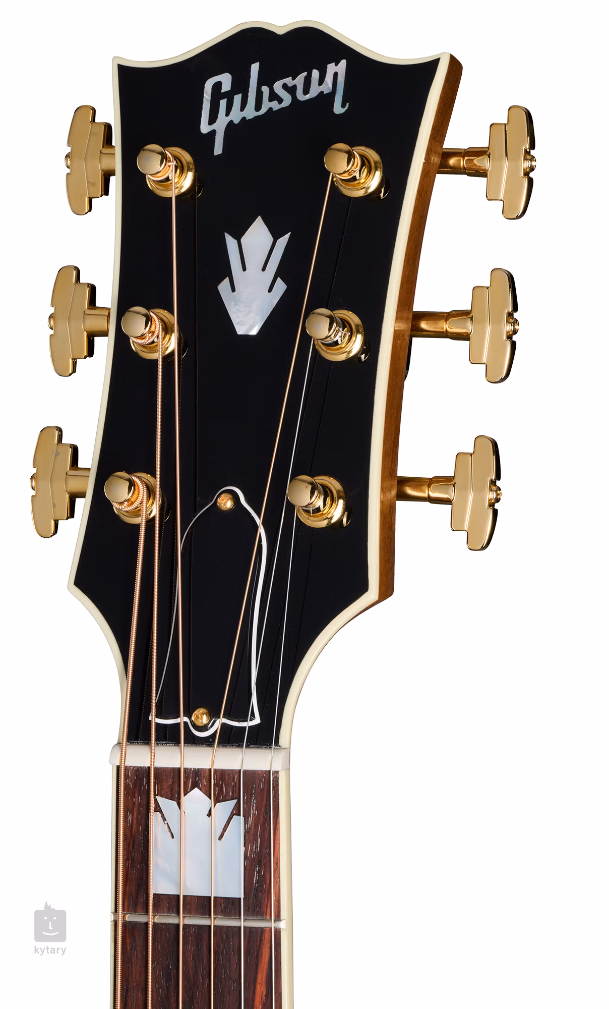 Les cordes sont montées sur les frettes TusQ zero et saddle dans des mécaniques Grover Imperial en finition dorée et une touche décorative en palissandre au design Gibson traditionnel. L'élégance de la finition est accentuée par les bordures périmétriques double face du corps et le pickguard en imitation écaille de tortue dans le design SJ-200.