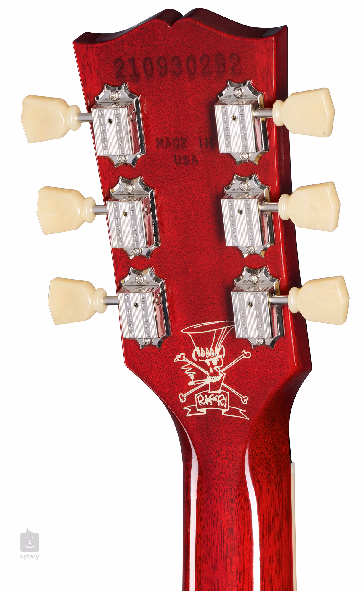 Deux micros humbuckers Gibson Custom Burstbucker avec aimants Alnico 2 confèrent à la guitare un son clair et chaud magnifiquement défini, ainsi qu'un crunch/distorsion rock complet pour le son des solos de guitare épiques. Les micros sont soudés à la main aux potentiomètres de volume et de tonalité et aux condensateurs "orange drop". Les cordes sont maintenues dans des accordeurs Vintage Deluxe avec Keystone pegs via un Graphtech zero fret et un ABR-1 Tune-O-Matic stringer via un ABR-1 Tune-O-Matic bridge. Le look élégant de la guitare est accentué par un corps et une touche brillants, un accastillage chromé et la signature de l'artiste sur le capuchon du barrage.