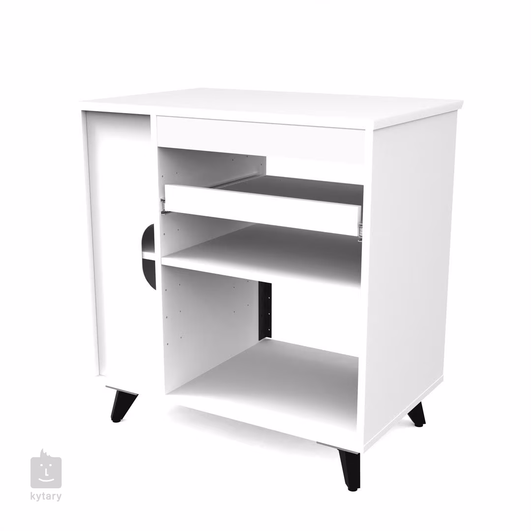 Vous pouvez ajouter des pieds métalliques robustes à l'étagère ou visser les roulettes si vous devez déplacer le meuble. Les deux options sont incluses, ainsi que tout le matériel de montage. Le montage lui-même est très simple. L'étagère est disponible en trois couleurs (noir, blanc, noyer) et peut être complétée, en option, par un panneau d'extension qui permet de relier l'étagère latérale modulaire à d'autres produits de la gamme Sound Desk et Workbench.
