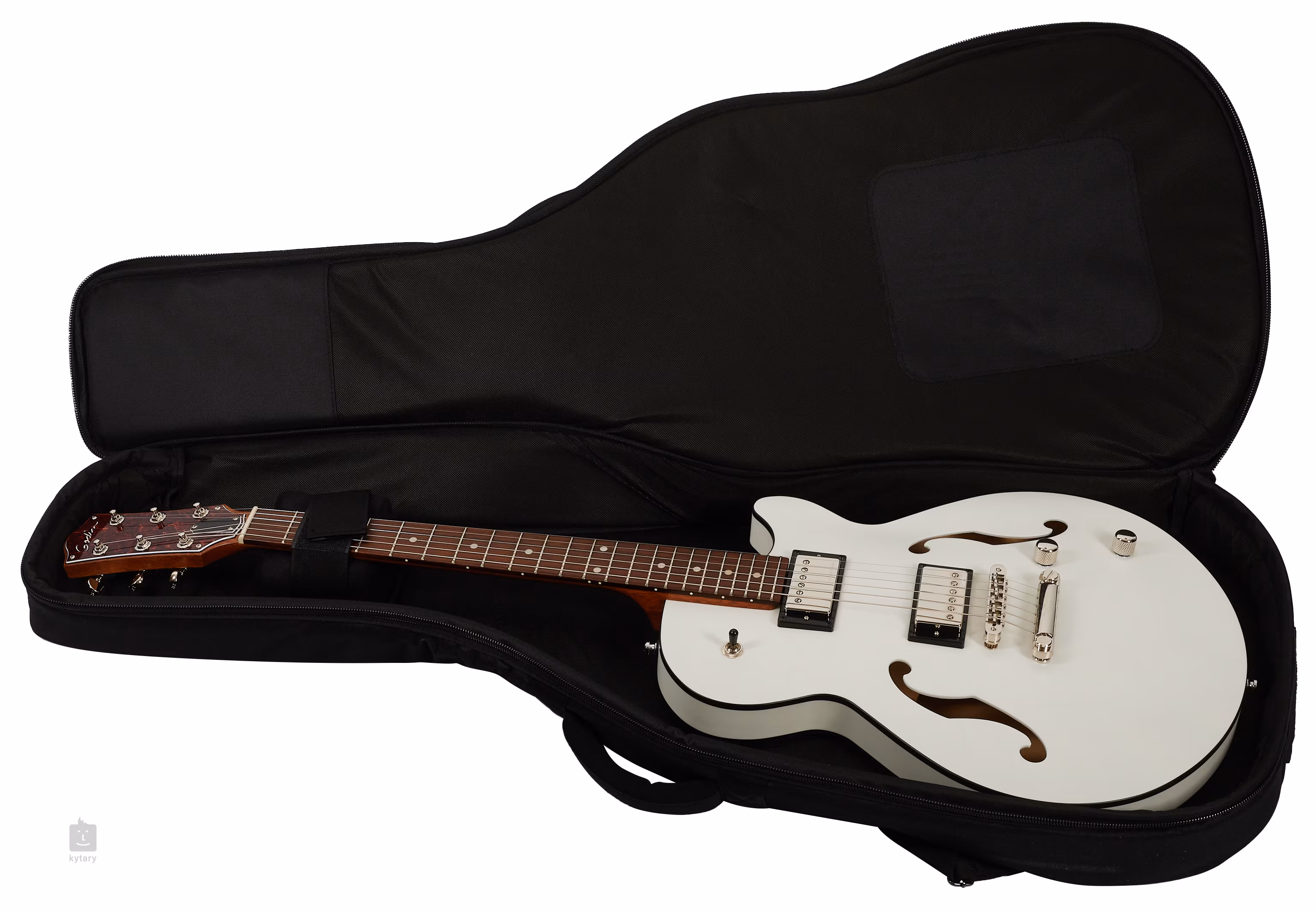 La Montreal Premiere HT Trans White est une guitare semi-hollowbody qui peut être utilisée dans une variété de styles musicaux - du jazz au blues en passant par le rock. Le corps de la guitare est composé d'une plaque avant, d'une plaque arrière et d'éclisses en cerisier massif canadien laminé et d'un bloc central en cèdre. Une touche en palissandre de 22 frettes est collée sur le manche en acajou. Des points de positionnement facilitent la navigation sur la surface de la touche.
