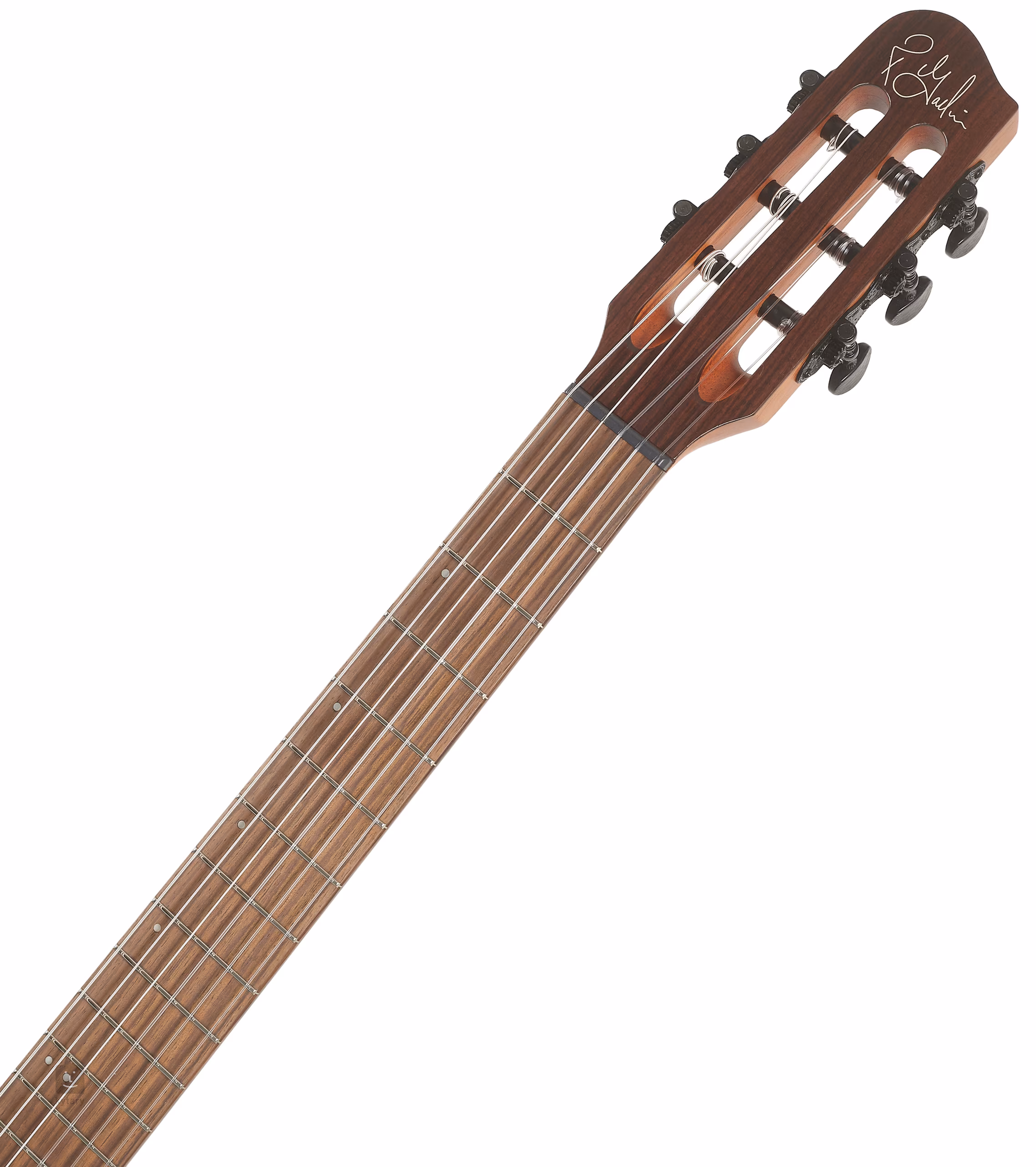 Le son de la guitare électroacoustique classique Multiac Mundial Kanyon Burst repose sur un corps en érable argenté et une table en cèdre massif. Une touche en palissandre à vingt-deux frettes est collée sur un manche en cèdre espagnol boulonné. Les cordes en nylon de la guitare sont fixées sur la frette zéro Graphtech dans un accordeur ouvert classique avec un rapport de transmission de 16:1 et une touche en palissandre. La finition Kanyon Burst accentue la qualité de fabrication.
