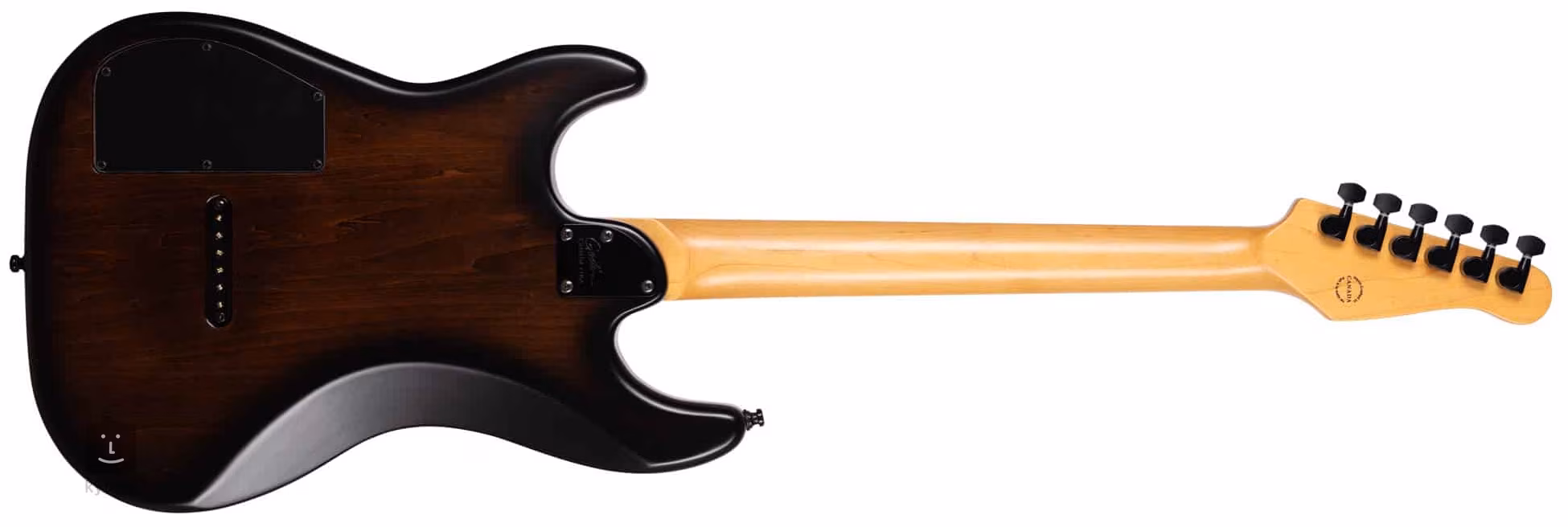 Les cordes sont fixées par un diapason TusQ à zéro frette dans un rapport de 18:1 et un chevalet solide sur tout le corps. La finition semi-brillante en Bourbon Burst et le pickguard pratique en imitation nacre accentuent la qualité de fabrication.