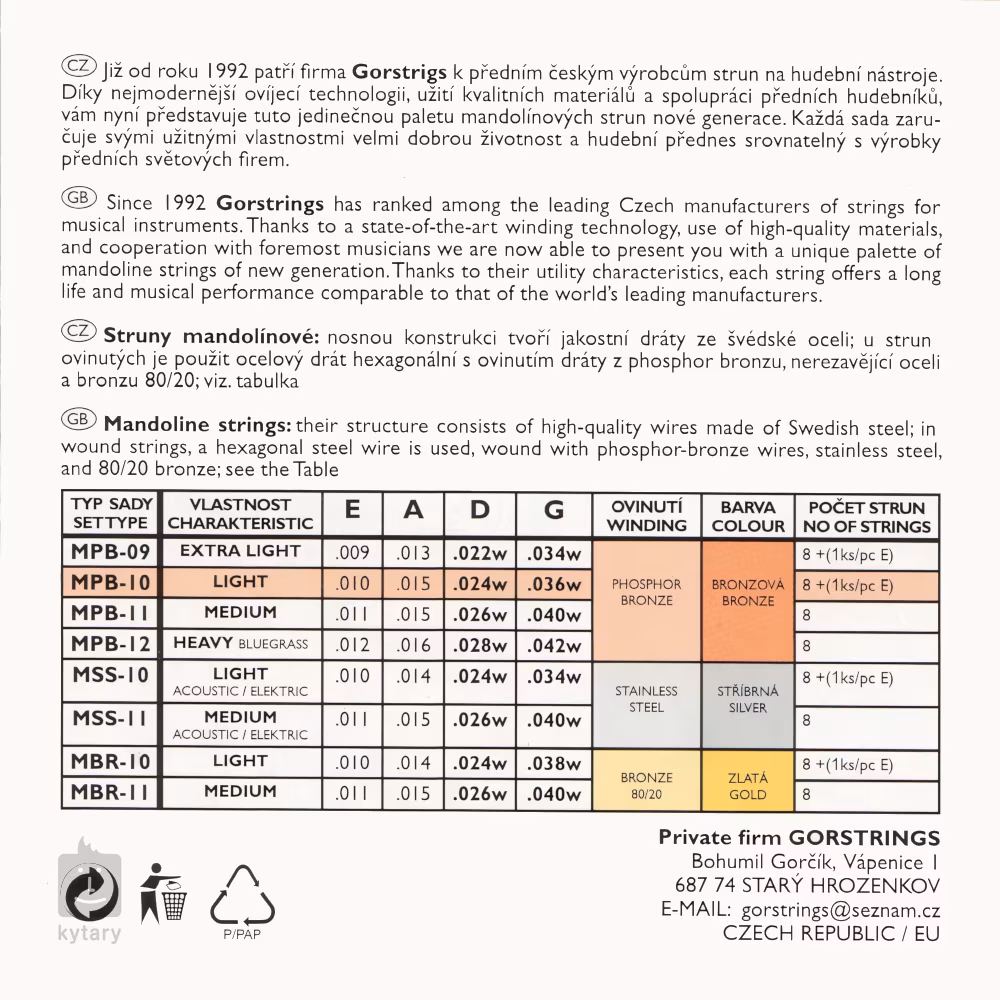 Gorstrings Mandolin MPB10 1036 + E