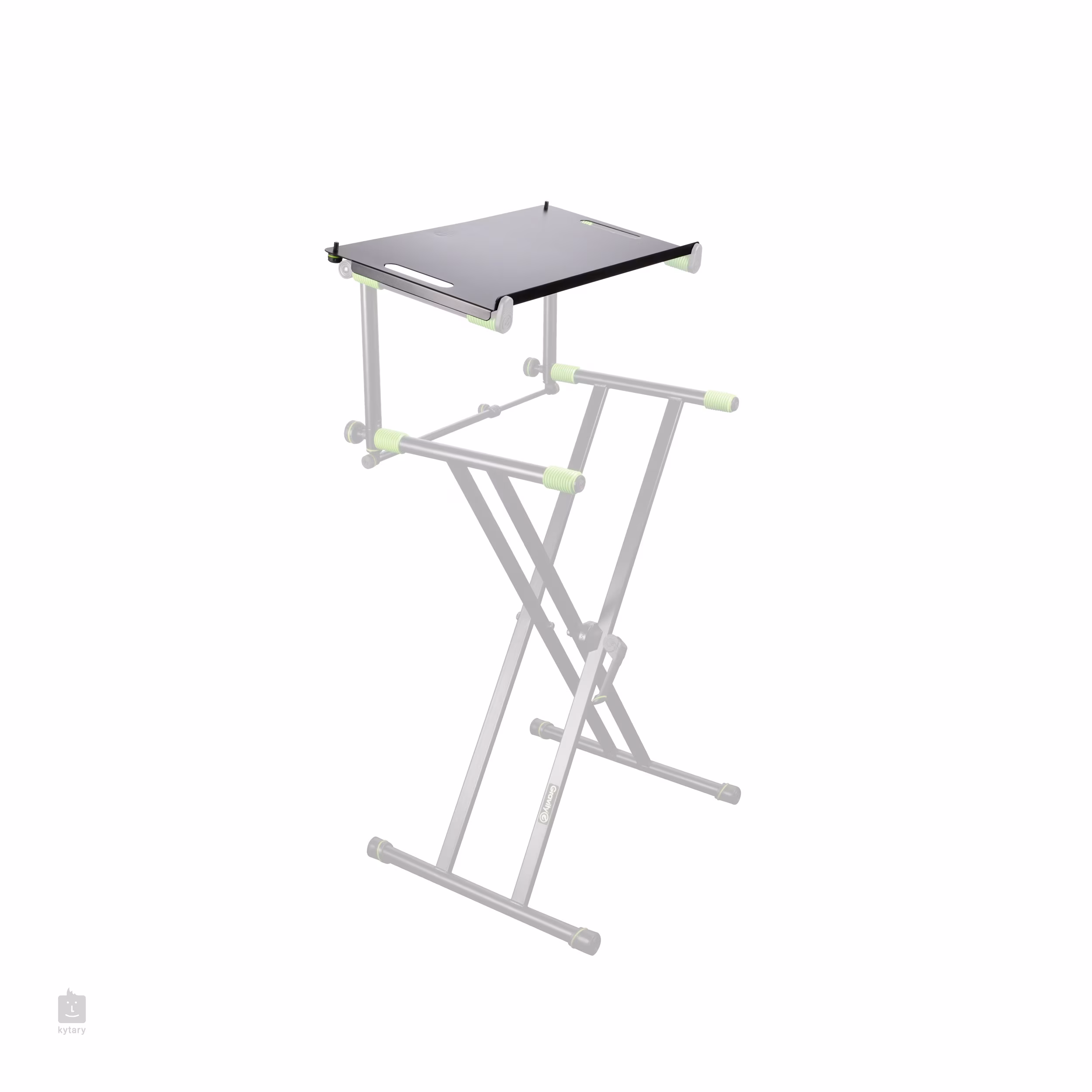 Rampe en acier durable convenant aux supports de clavier a plusieurs niveaux. La surface de 66 x 35 cm peut facilement accueillir un ordinateur portable, un synthétiseur, un contrôleur, une groove box, des effets et d'autres équipements. La rampe comprend deux filets de 3/8" permettant de fixer des supports de micro, des pieds et des cols de cygne. Le bord inférieur comporte ensuite une butée pour une sécurité maximale de votre équipement.