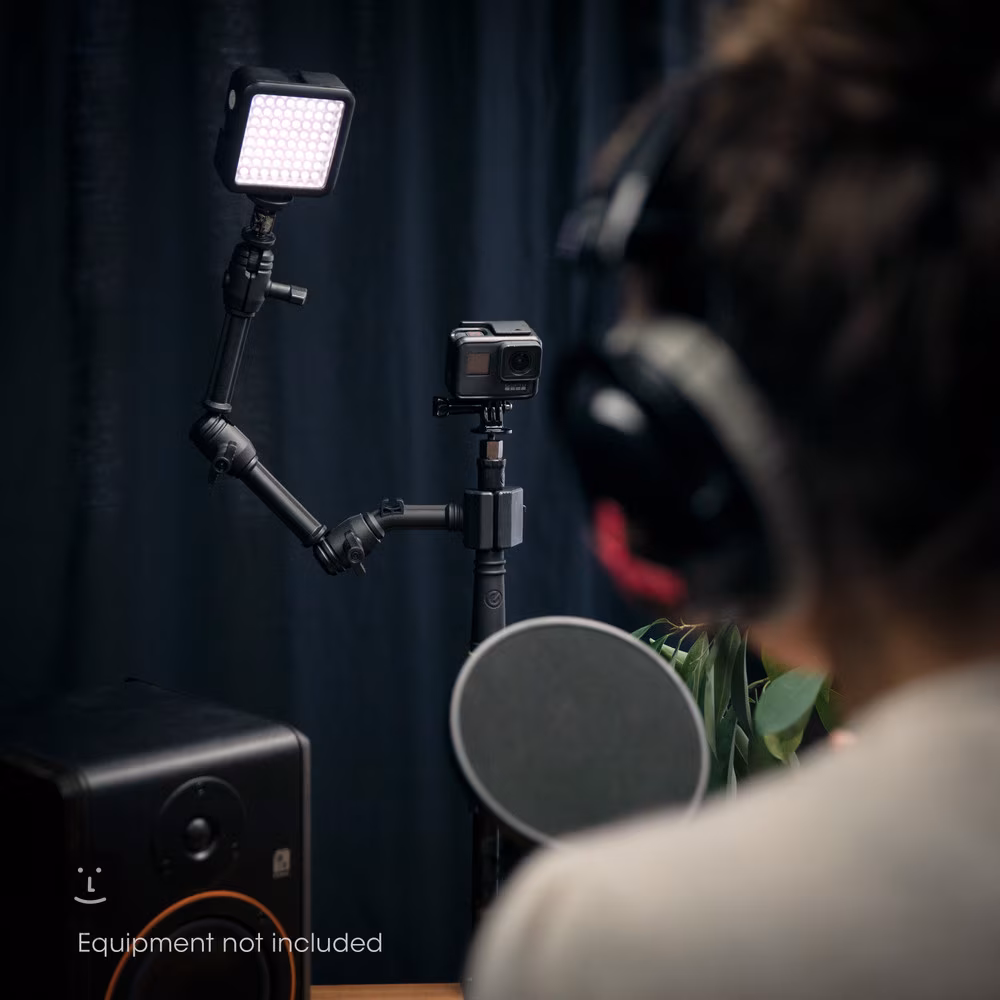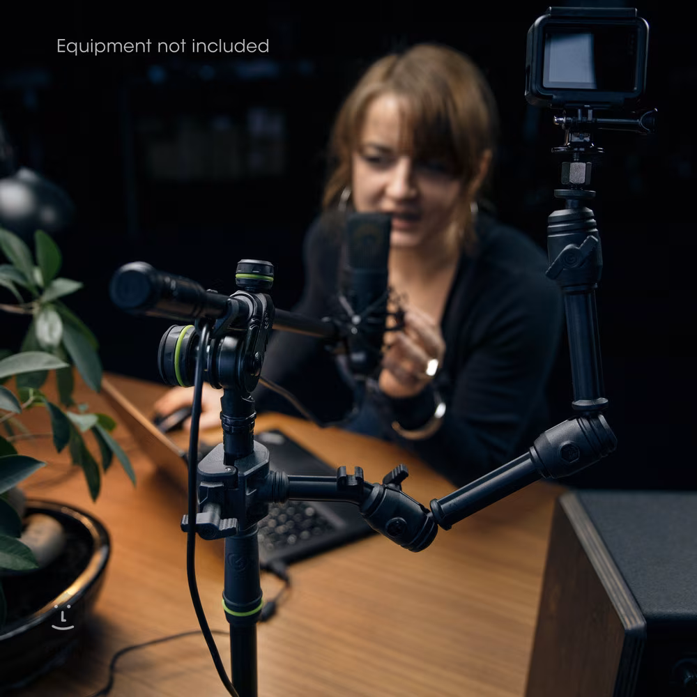 Le support de microphone convient aux créateurs de podcasts, aux Youtubers, au chat vidéo et à de nombreuses autres applications. Vous pouvez placer un support de microphone, un appareil photo, une lampe à DEL ou un support pour smartphone sur la tige filetée de 3/8". Le support se fixe ensuite sur une table d'une largeur maximale de 45 mm et vous pouvez commencer à enregistrer ou à diffuser immédiatement.