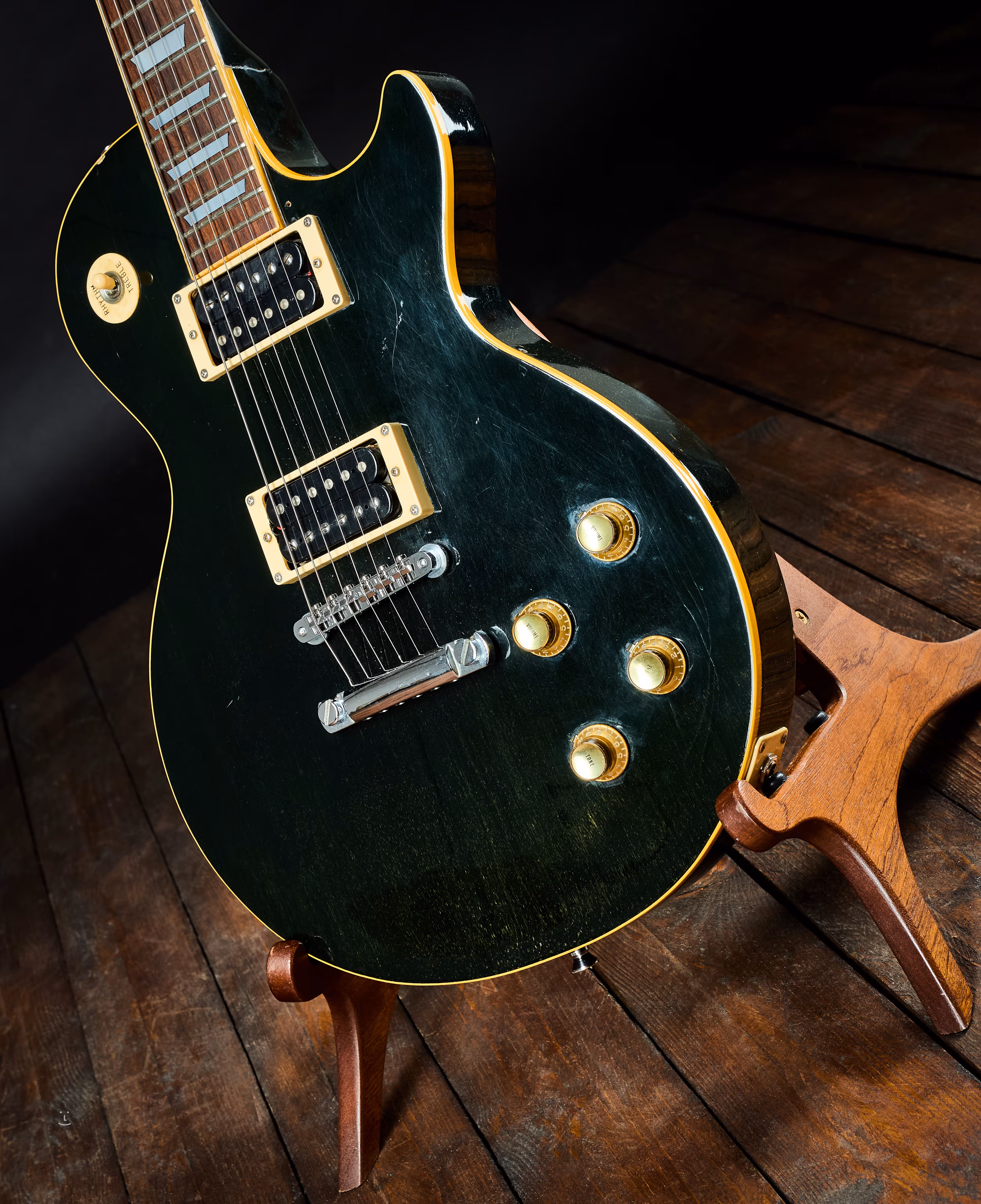 LP Lawsuit de la marque japonaise Greco, fabriqué au Japon en 1977. Modèle à façade creuse (la table est en érable laminé).