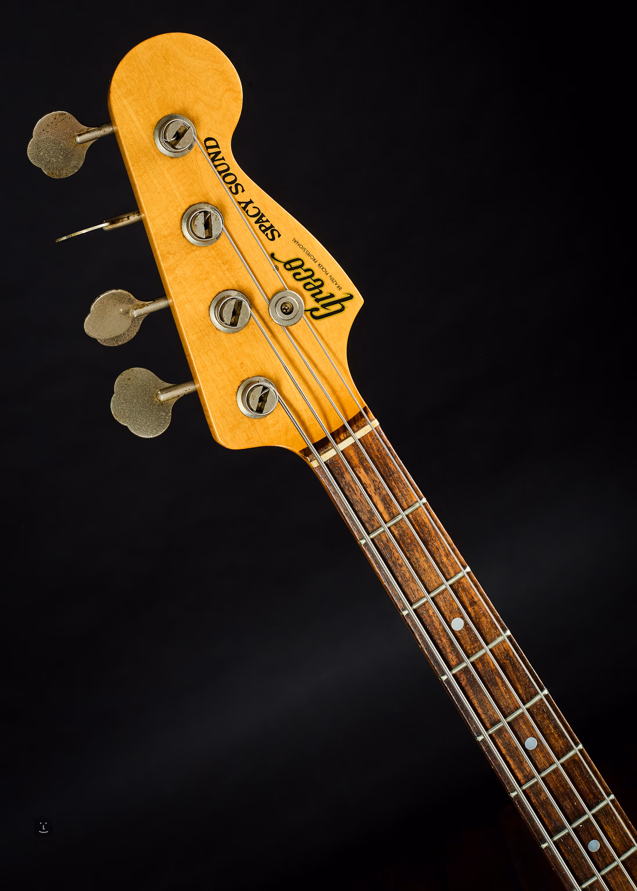 L'électronique est entièrement d'origine, intacte et fonctionnelle. Il y a de vieilles taches sur la touche dues à des produits cosmétiques apparemment inappropriés pour la guitare ; il y a quelques petites éraflures sur le corps. Très bon état !