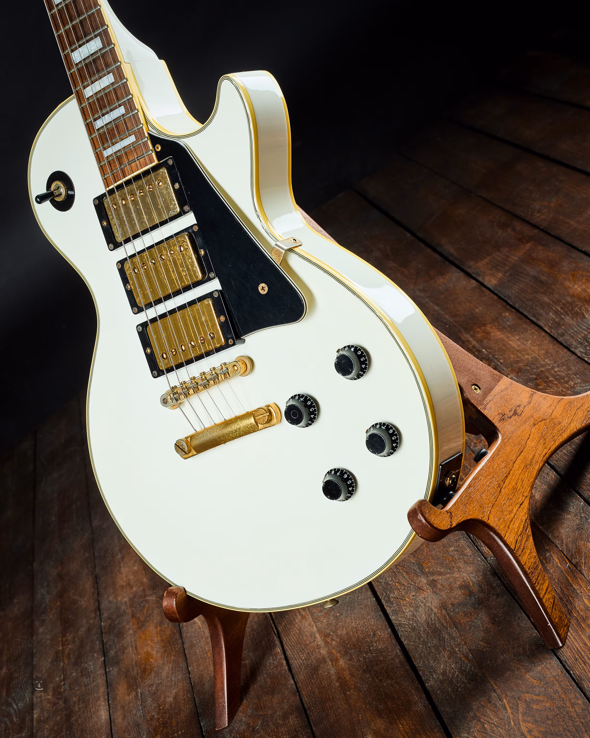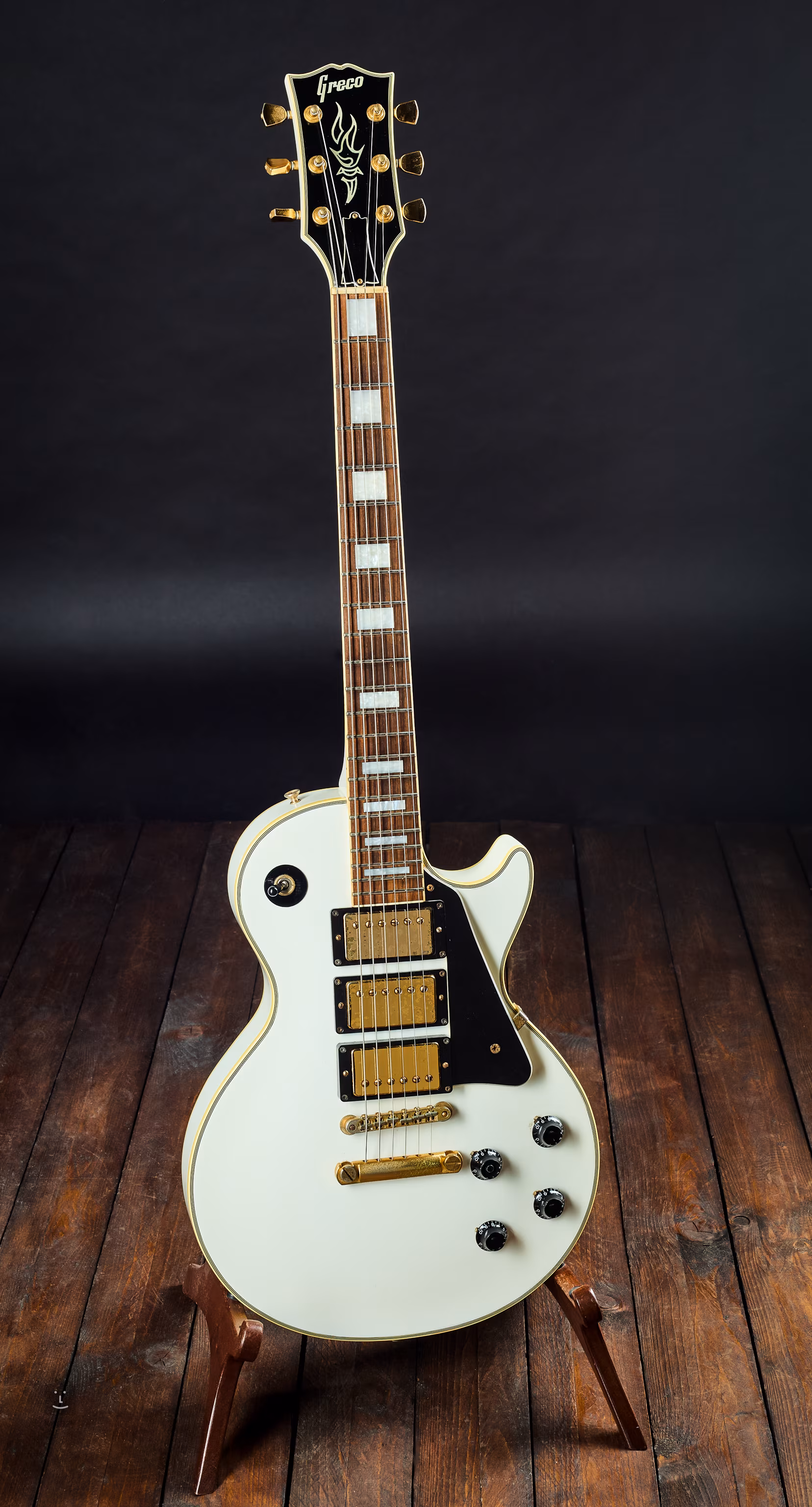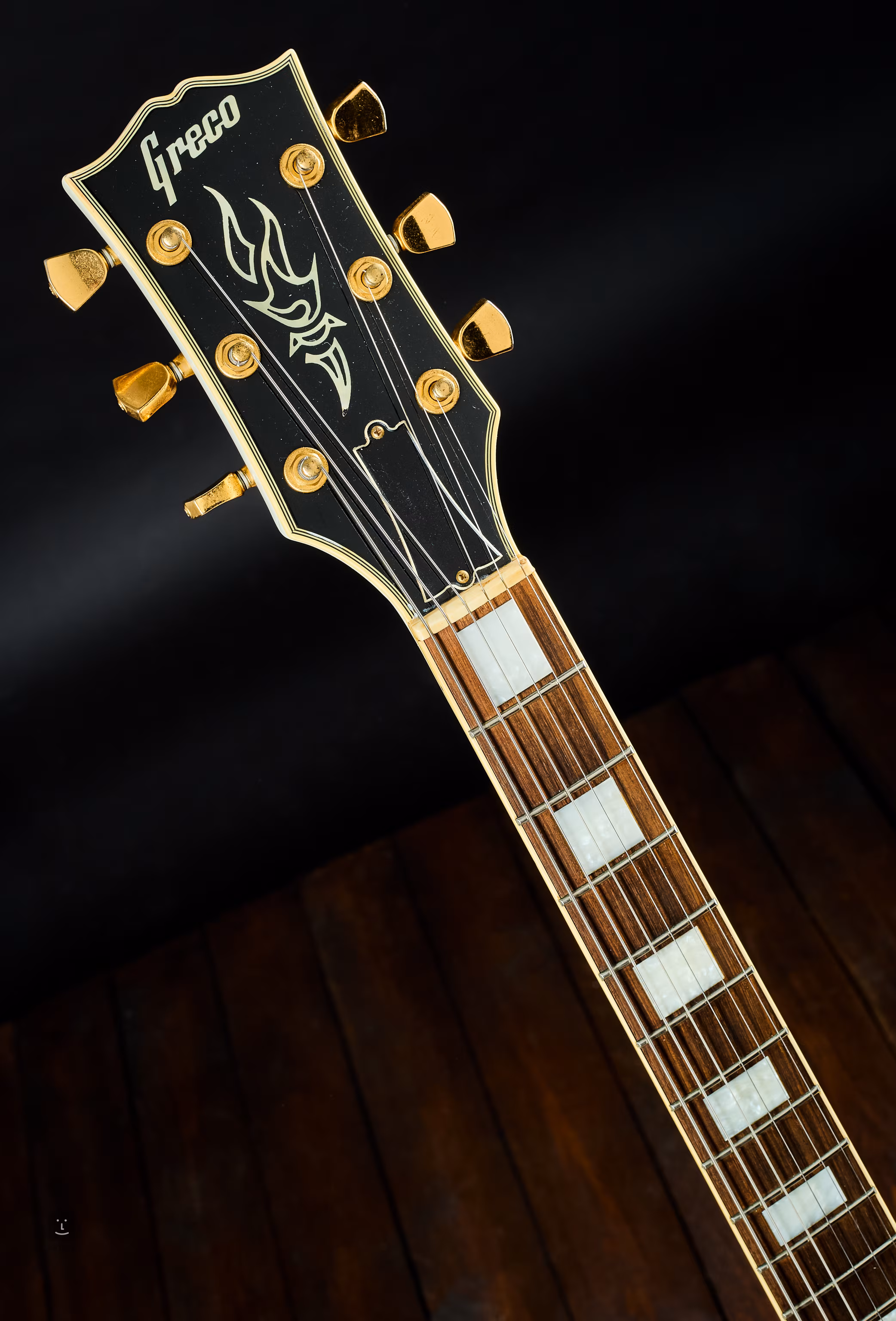 Clone japonais de la Les Paul en très bon état et également en état d'origine à 100%. L'instrument est dominé et défini par un trio de micros Greco Screamin.