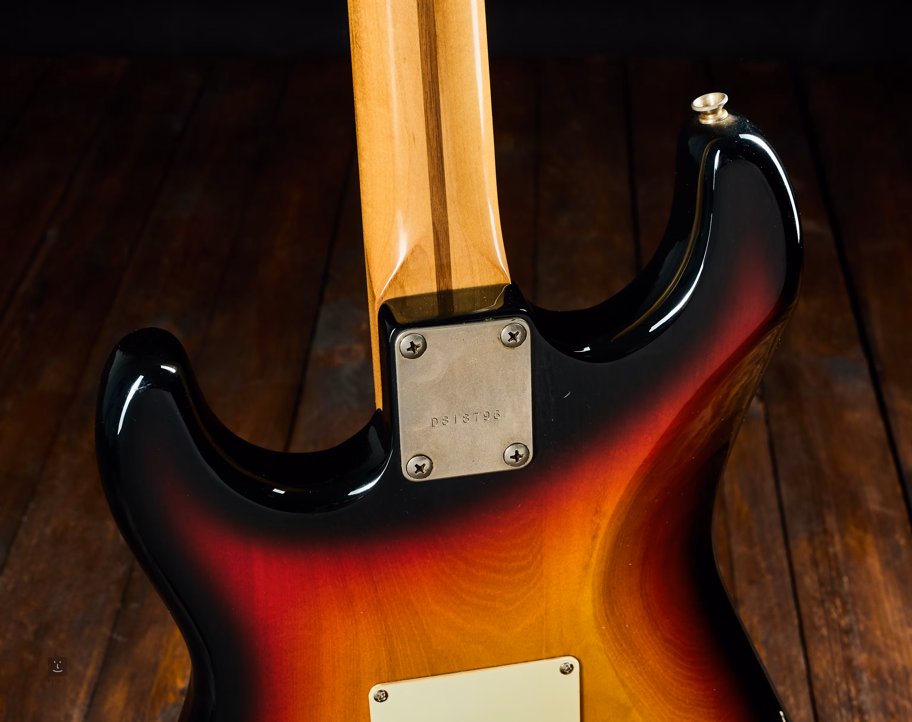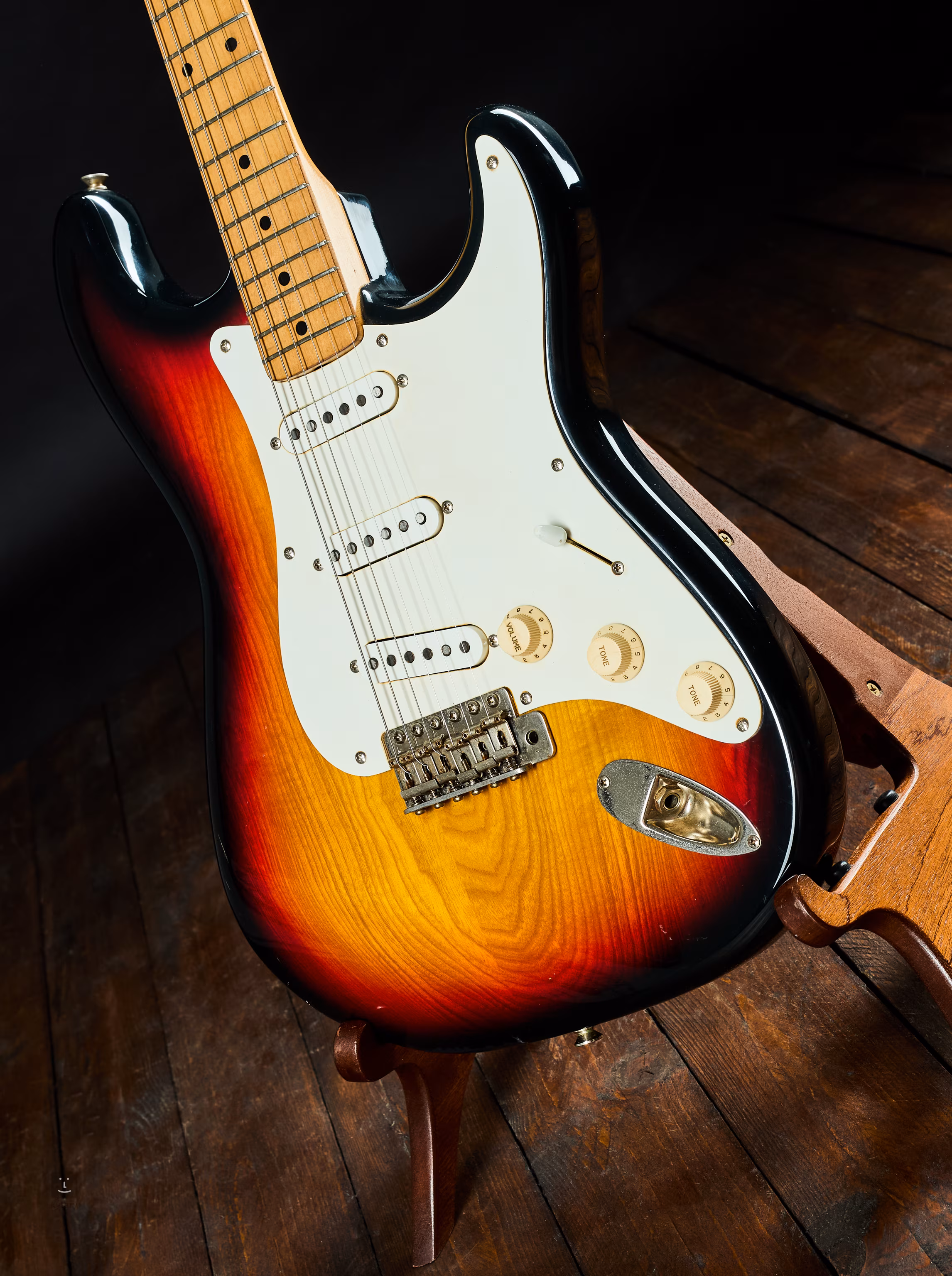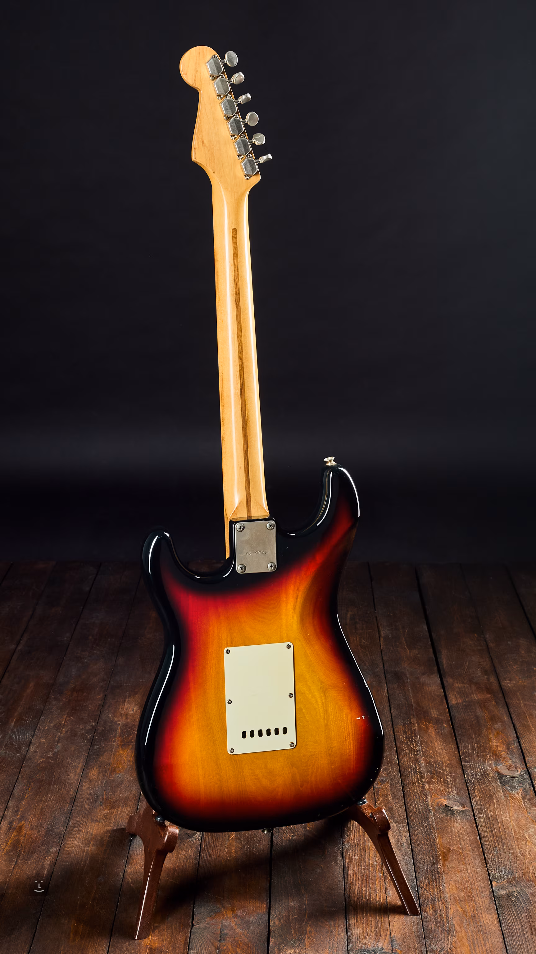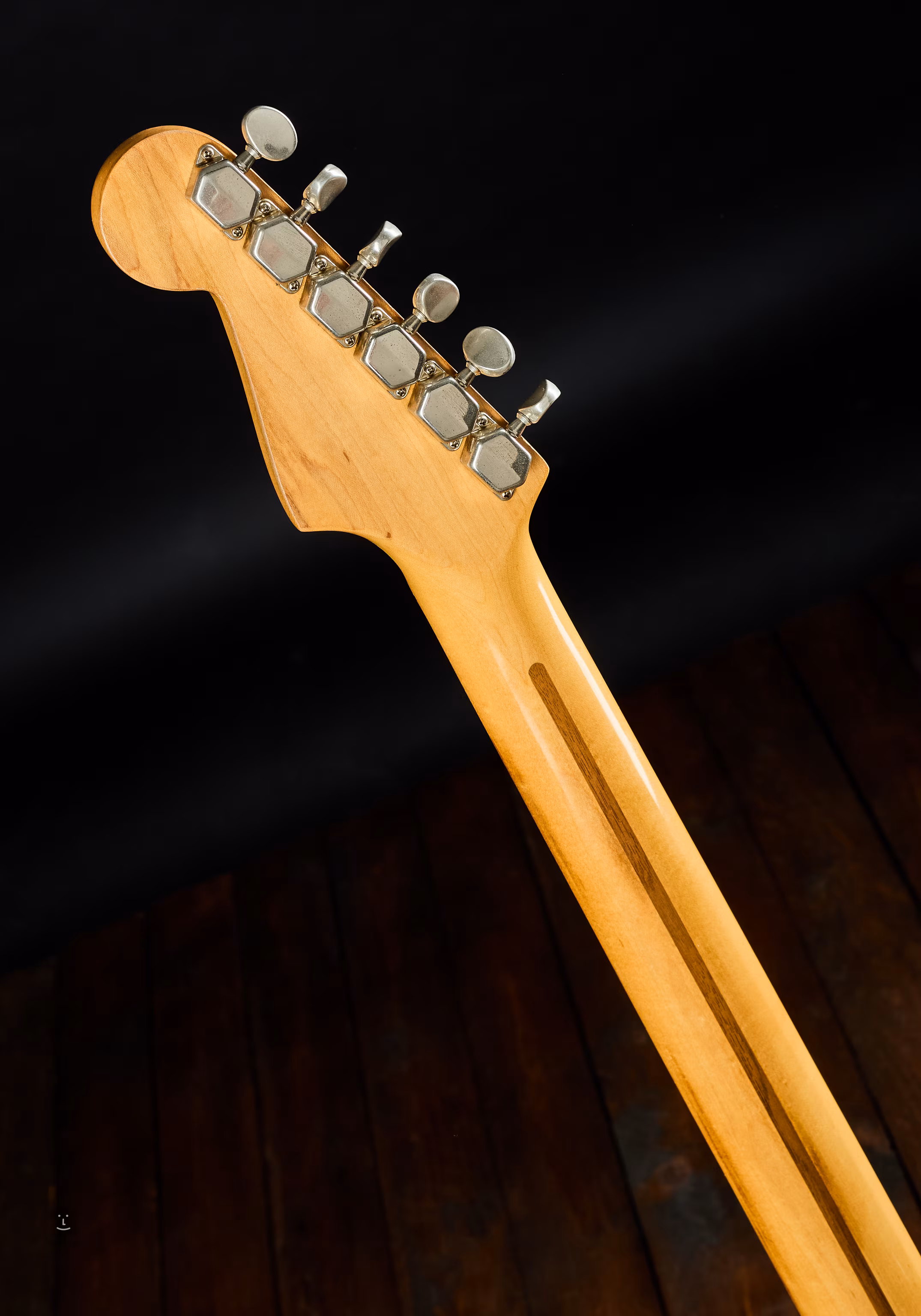 Le corps de cet instrument est en foin japonais, le manche et la touche en érable, et l'assemblage est fixé par 4 vis. L'électronique est d'origine, y compris le commutateur à trois positions d'époque.