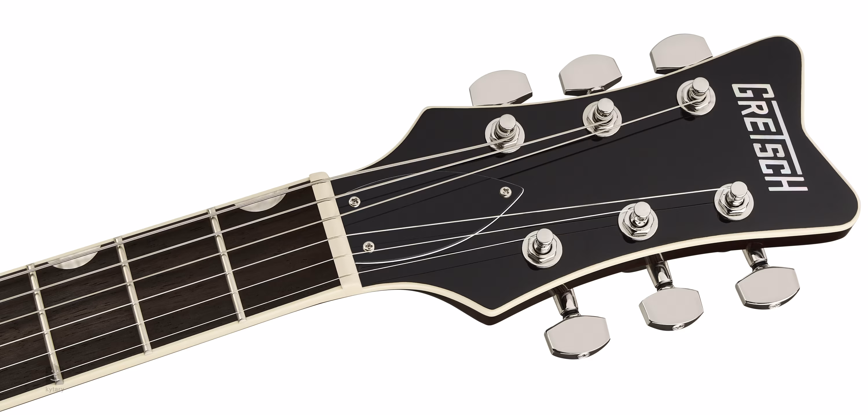 Deux micros humbuckers Twin Six confèrent à la guitare un son chaud et clair, inspiré des micros BroadTron rétro, ainsi qu'une distorsion implacable lorsqu'il s'agit de mettre les gaz. Ajustez les contours du son à l'aide des commandes standard. Les cordes sont montées dans les mécaniques moulées sous pression de la marque et dans un solide cordier avec des sillets réglables. La qualité de fabrication est accentuée par un accastillage en nickel et un élégant pickguard en écaille de tortue.