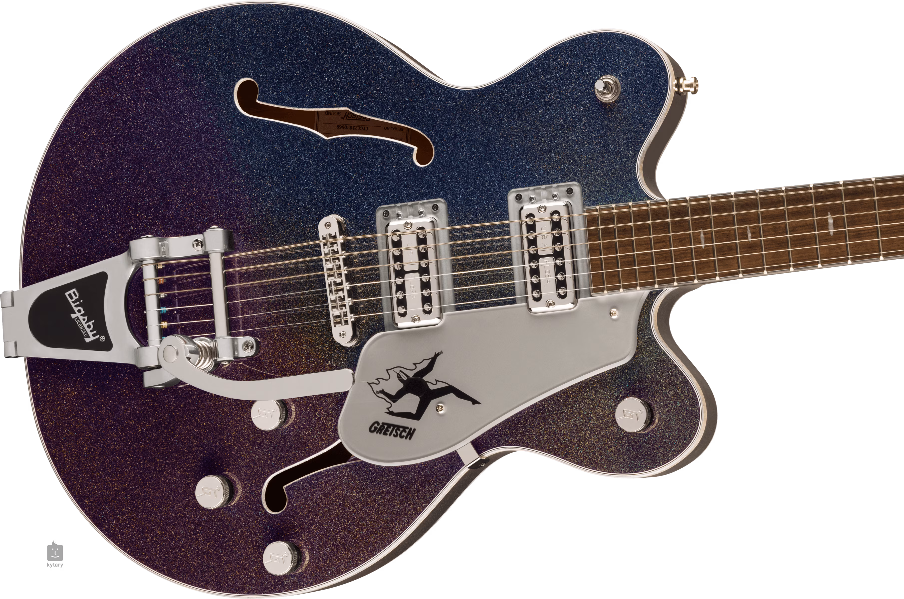 Les deux humbuckers USA Full'Tron conçus par le gourou du design Tim Shaw confèrent à la guitare des médiums légèrement plus prononcés et plus de "mordant" en plus du son et de la sensation authentiques de la Gretsch, ce qui donne à la guitare un son un peu plus "punchy" sur les réglages d'overdrive/distorsion et à plein volume. Pour le régler, il y a deux potentiomètres de volume (pour chaque micro séparément), un obturateur de tonalité, un réglage général de volume principal avec circuit Treble Bleed (permettant de baisser le volume sans accentuer les fréquences basses) et un commutateur de micro à trois positions.