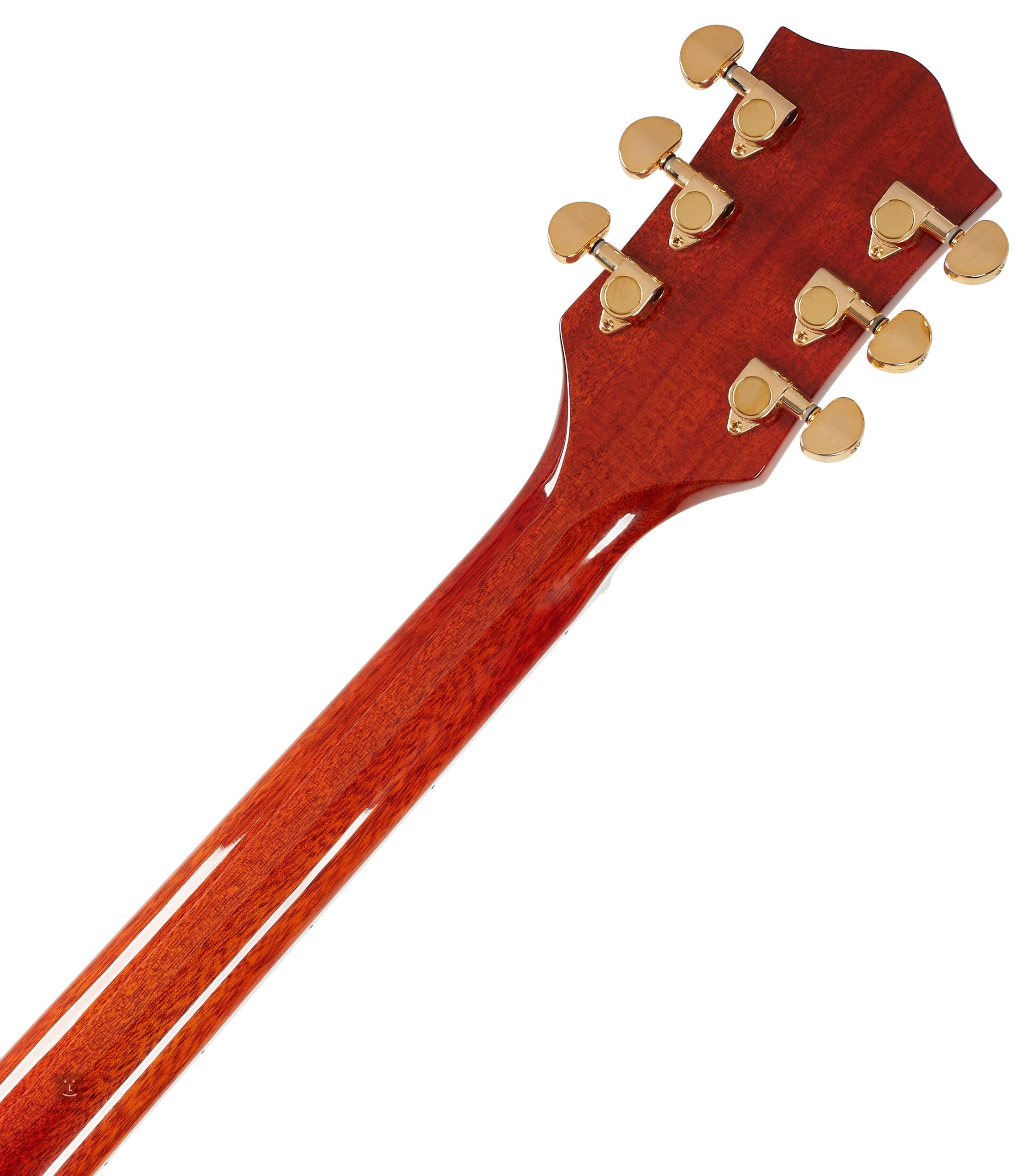 Le manche en acajou est collé à une touche en figue dotée de 21 frettes. Un pan coupé dans la partie inférieure du corps facilite l'adaptation de la touche aux positions supérieures. Les cordes sont maintenues dans des diapasons moulés sous pression en finition dorée, sur une touche en os synthétique et un sillet de chevalet compensé, ainsi que sur une touche en bois de figuier.