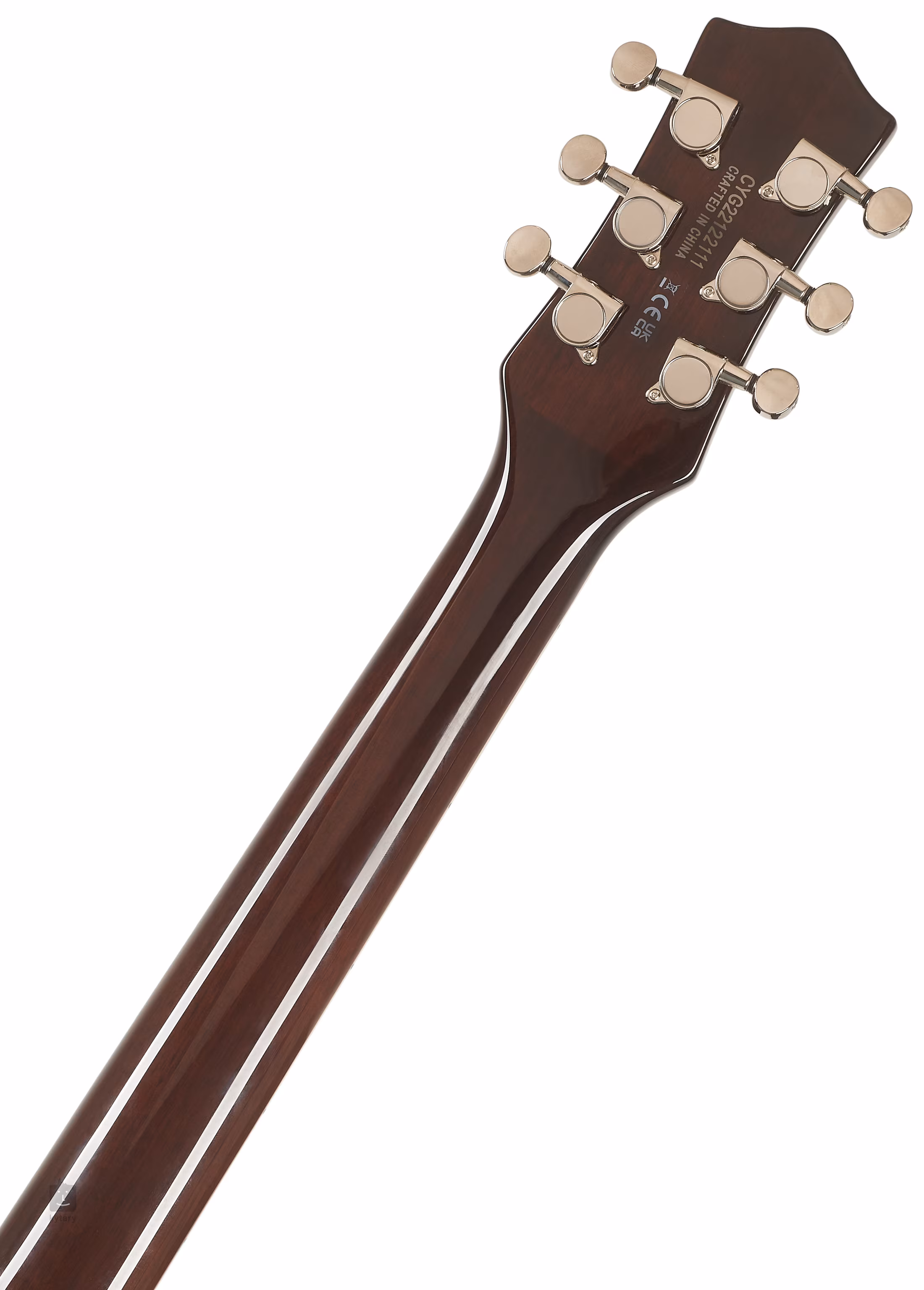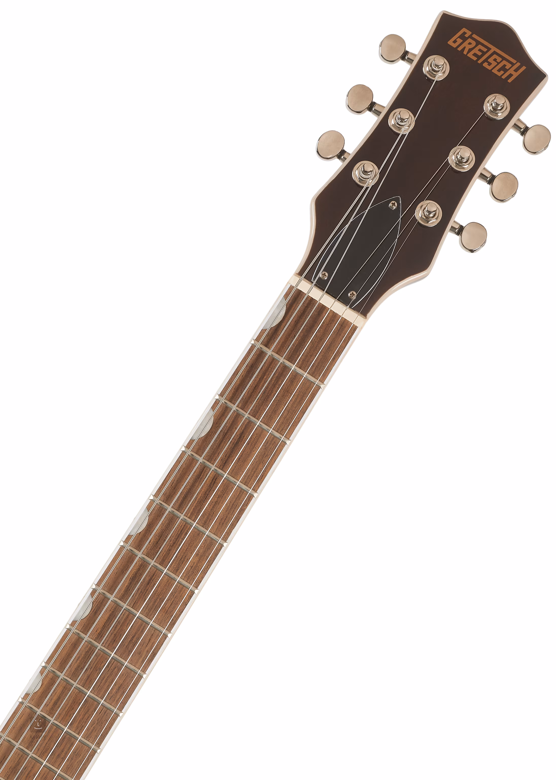 Les cordes sont montées sur des mécaniques moulées sous pression et sur une tête fixe (Adjustable Wrap-Around). Le design élégant de l'instrument est accentué par des éléments traditionnels sous la forme d'un entourage de corps brillant complété par des lignes noires et blanches, d'un accastillage en nickel et d'un pickguard en imitation écaille de tortue avec le logo Gretsch en or.