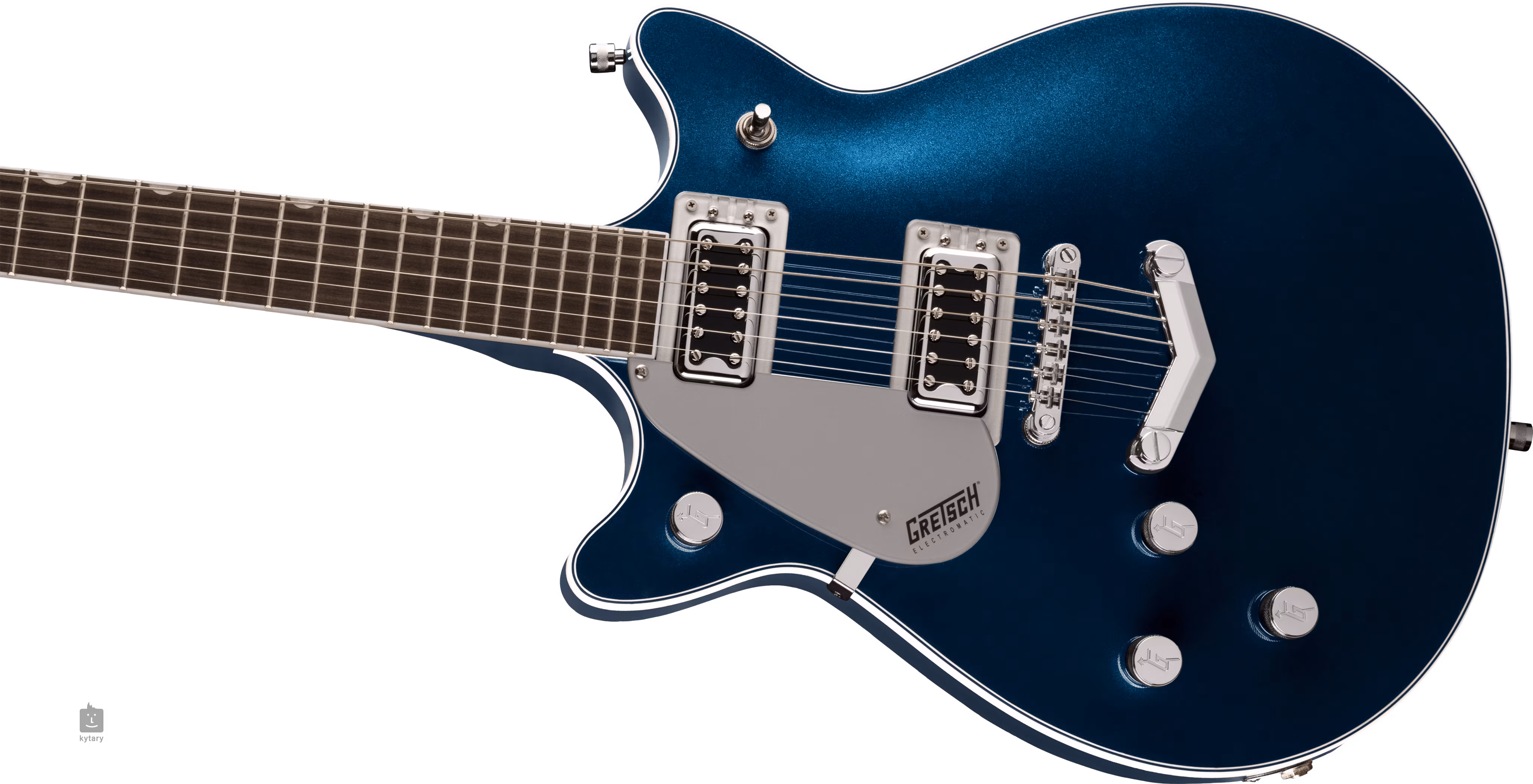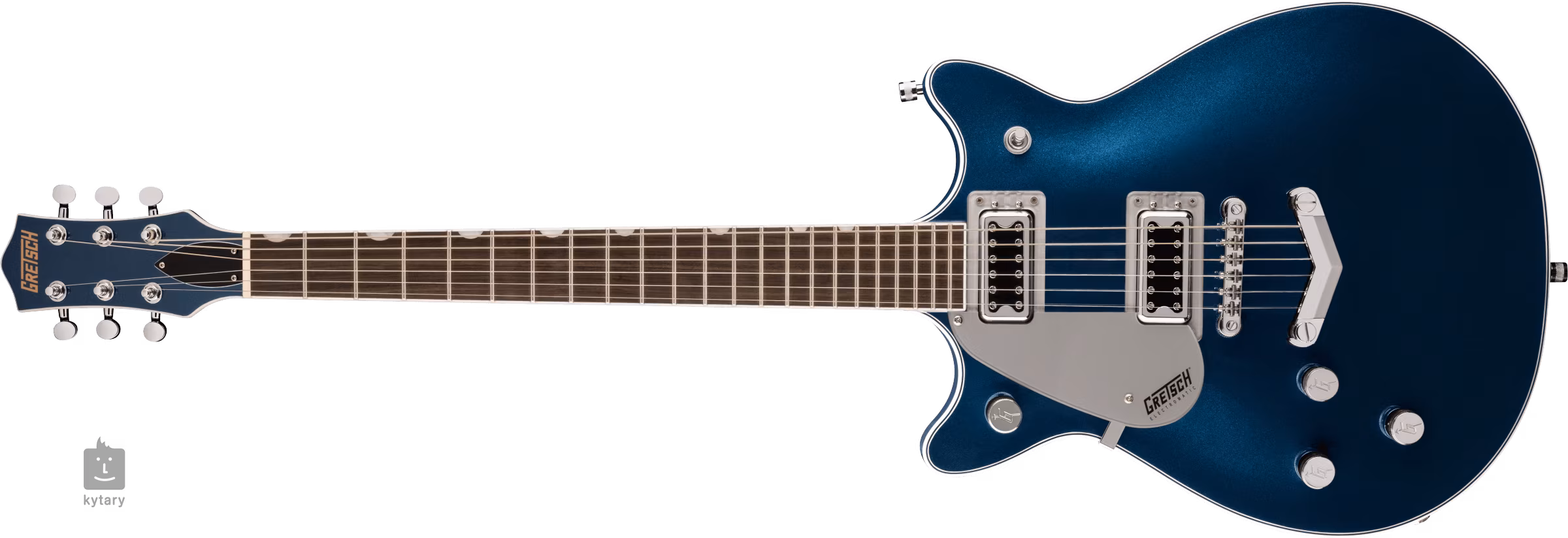 Les cordes sont logées dans les mécaniques Die-Cast de la société, le cordier ajustable Adjusto-Matic et les cordes Gretsch V Stoptail. Le design élégant de l'instrument est accentué par des éléments traditionnels sous la forme d'un contour de caisse brillant complété par des lignes noires et blanches, des éléments chromés et un pickguard en plexi argenté avec le logo Gretsch noir.