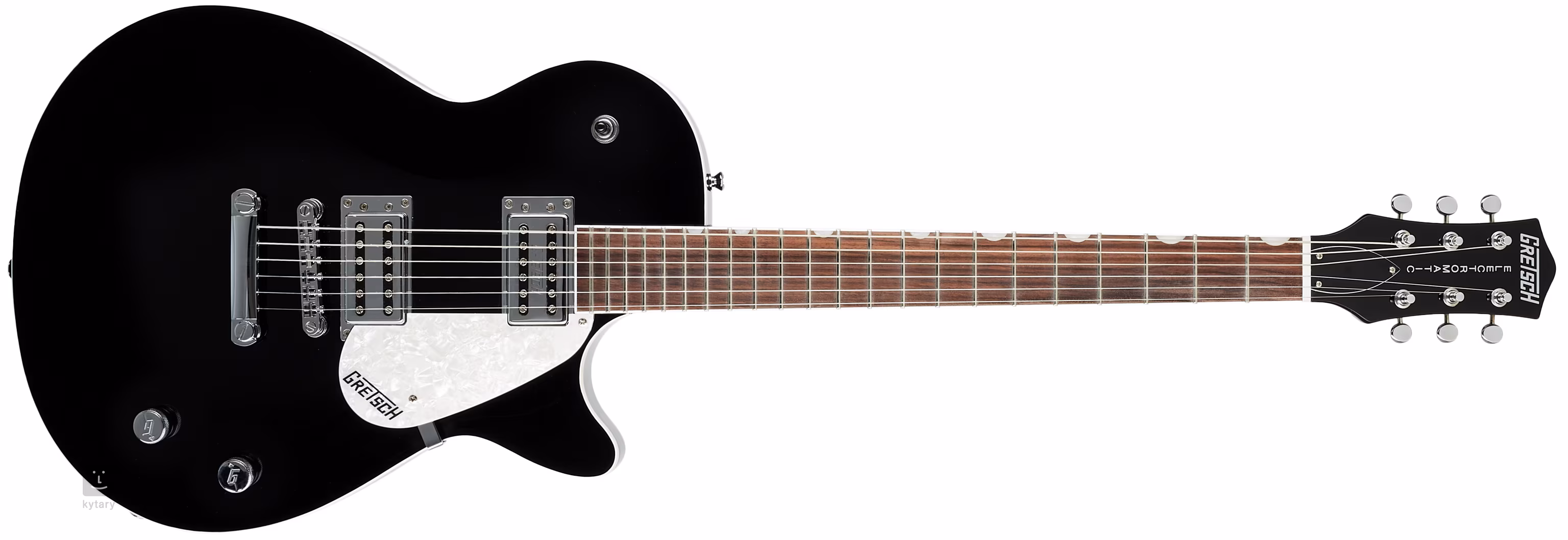 Sur l'instrument, vous trouverez deux micros de type humbucker, qui sont fabriqués en interne chez Gretsch et portent la désignation Dual-Coil. On peut passer de l'un a l'autre avec un commutateur a 3 positions, et le son est contrôlé par des potentiometres de volume et d'obturateur de tonalité.