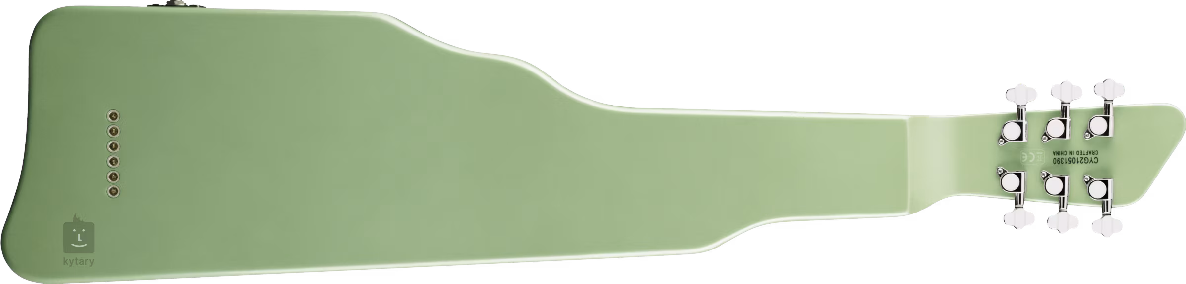 Le modele G5700 possede un corps en acajou et une touche en plastique avec vingt-huit frettes. La touche peut etre facilement orientée grâce a des reperes de position aux formes géométriques variées. Le son est capturé par un micro Gretsch a simple bobinage. Son caractere peut etre réglé par les potentiometres de volume et d'obturateur de tonalité. Les cordes sont ancrées par l'intermédiaire de la frette zéro en aluminium dans les mécaniques d'accordage Die-Cast et d'une tete et de cordes chromées avec fixation a travers le corps de l'instrument. Le look élégant de la guitare en acier est accentué par la plaque de contrôle en plastique Art Déco en argent.