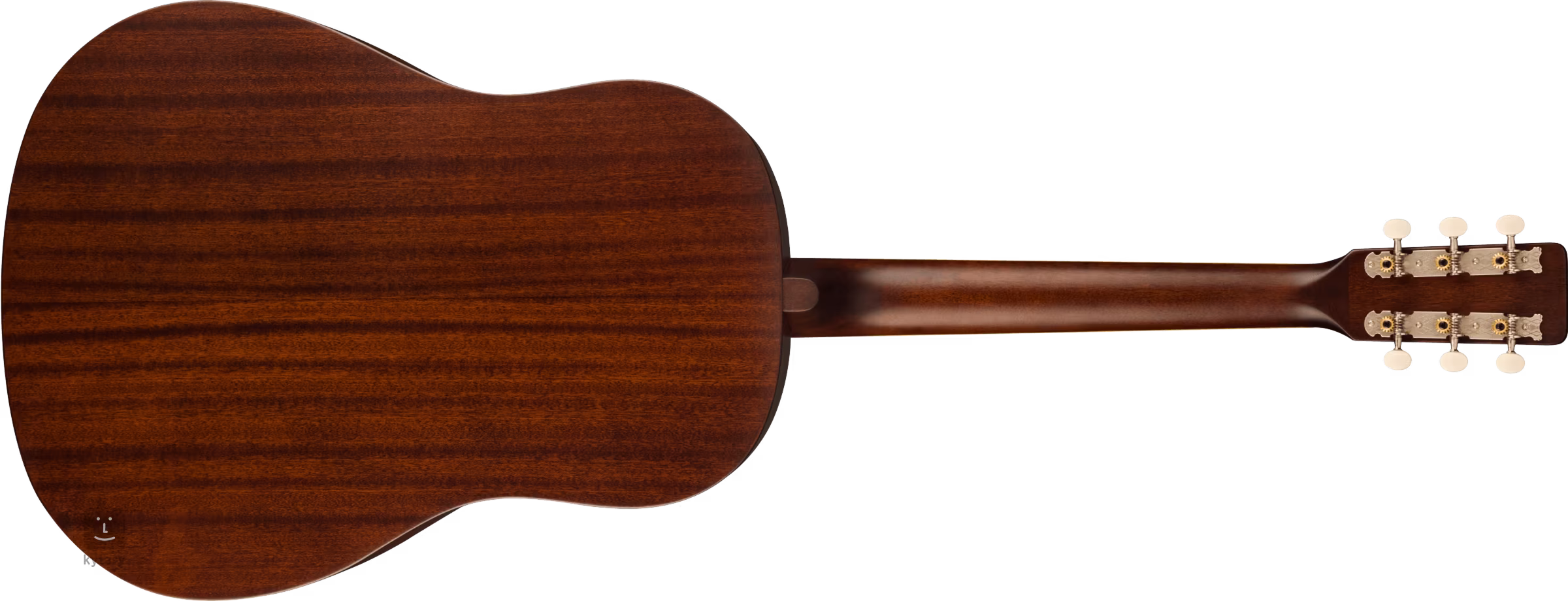 Le corps de la Jim Dandy Dreadnought Frontier Stain est en sapelli laminé. Sur le manche en nato au profil en "C" est collée une touche en noyer munie de vingt frettes. La bonne résonance du corps est soutenue par les traditionnelles nervures en X, et l'orientation sur la surface de la touche est facilitée par des points de positionnement en imitation de nacre. Les cordes sont attachées par une frette zéro et un sillet compensé en os synthétique dans une mécanique ouverte moulée sous pression et une touche en noyer. Le style de la guitare est accentué par la finition teintée de la table d'harmonie, la plaque de protection simple pli et la bordure en blanc vieilli, ainsi que par les accessoires en nickel.