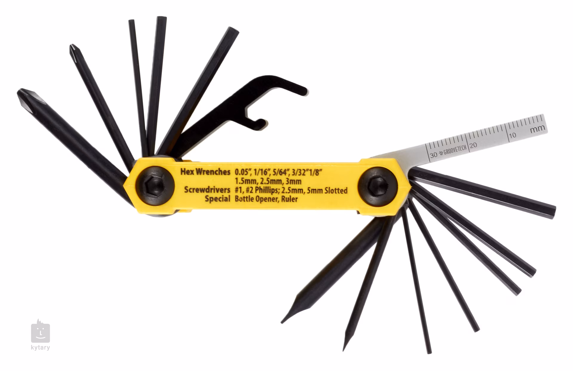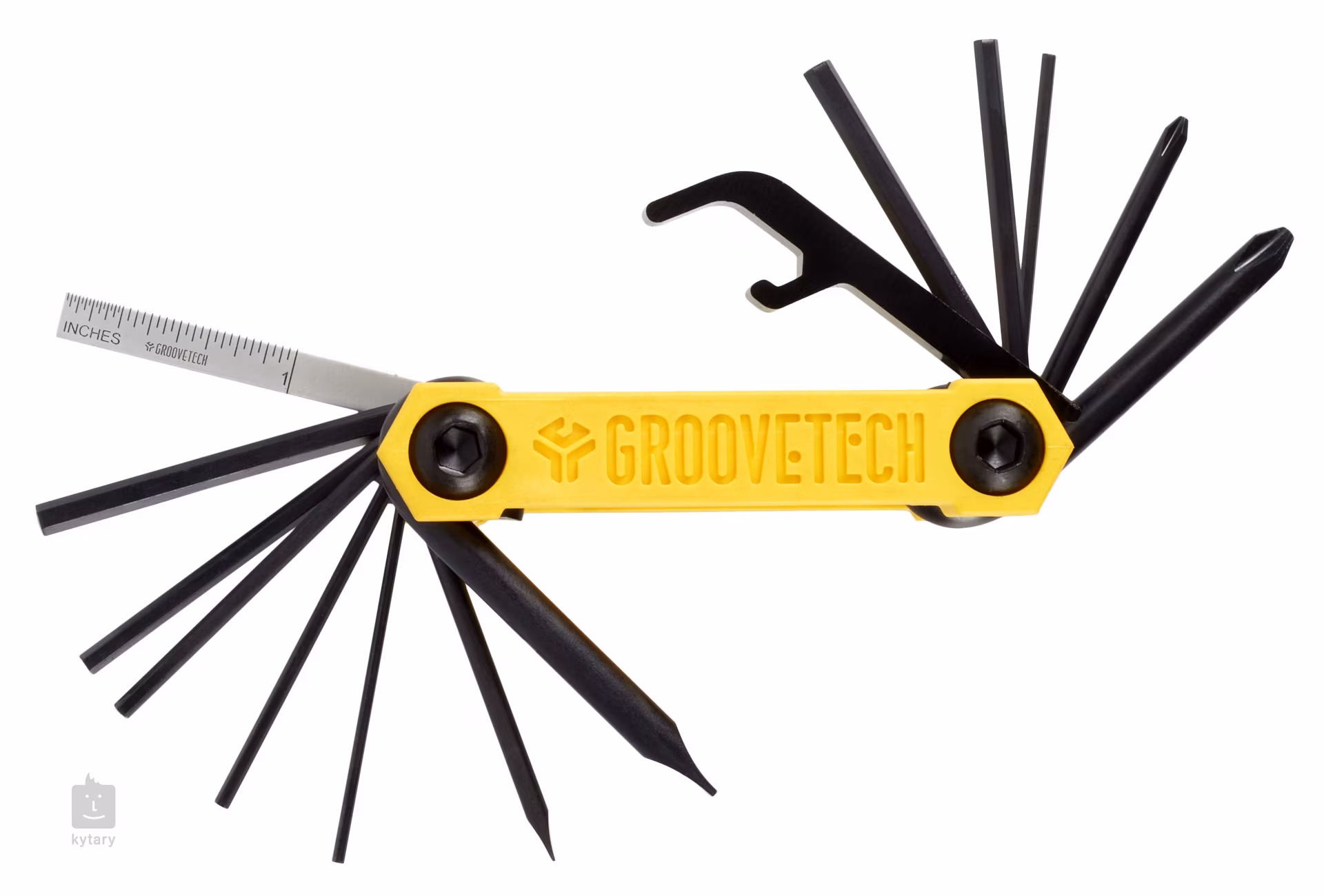 Revendiquant le titre de plus petit multitool du monde, cet outil comporte jusqu'a 14 outils qui peuvent prendre en charge le réglage global de votre instrument - des systemes de trémolo et de la hauteur des cordes ou de la mise en correspondance a la hauteur des micros. En bref, vous pouvez faire pratiquement tout ce qui est essentiel avec cet outil. En plus des tournevis, des tournevis hexagonaux et d'une regle de précision, un décapsuleur, par exemple, vous sera certainement utile.