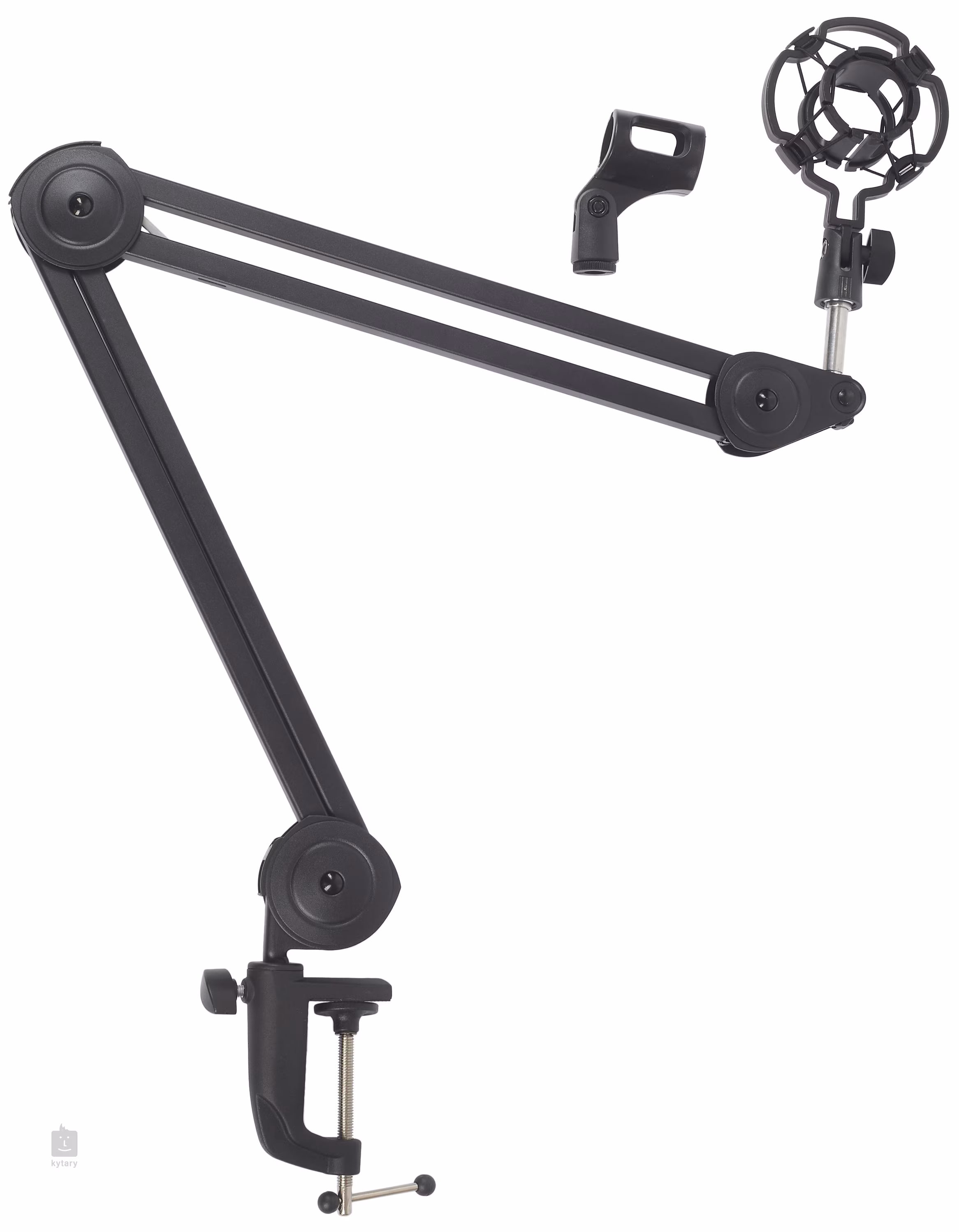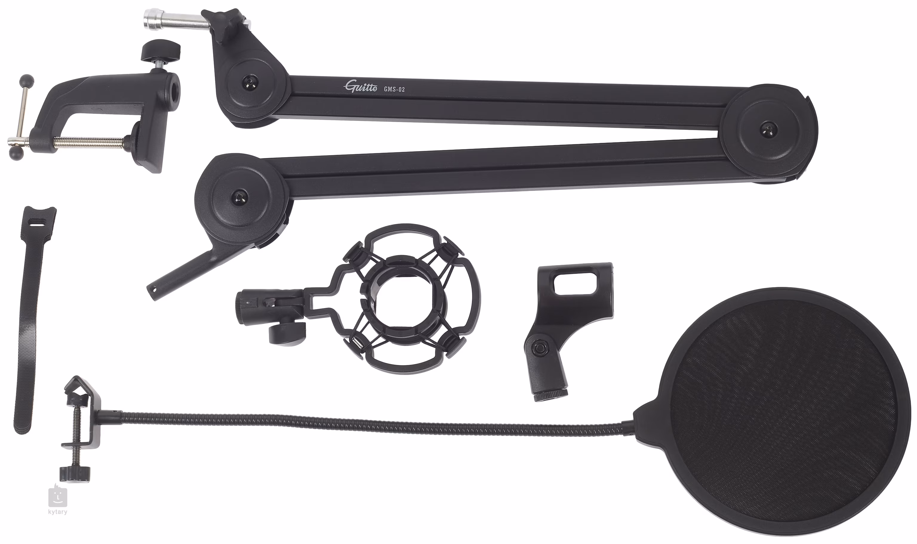 Le bras de microphone GMS-02 pour microphones dynamiques et à condensateur offre un réglage à 360 degrés, une fixation facile à la table ou au bureau et une construction en acier. L'ensemble comprend un filtre anti-pop, une housse anti-vent et des supports de microphone.