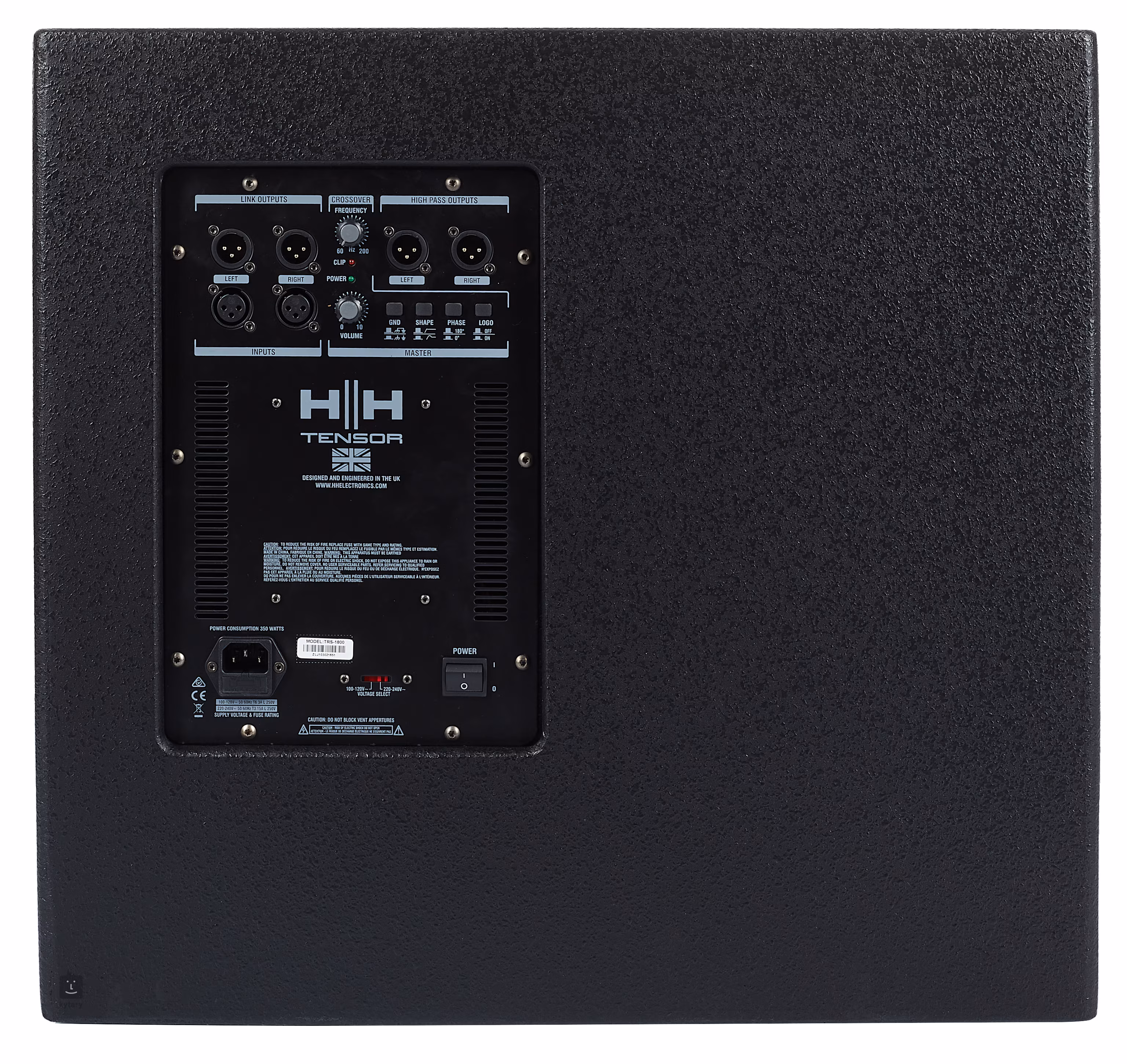 Le nouveau modele de subwoofer actif HH TRS-1800 de la série Tensor offre une puissance de crete robuste de 1400W. Le haut-parleur professionnel HH de 18 pouces est alimenté par un amplificateur de classe D de haute qualité. Pour une correspondance parfaite avec les satellites connectés, le TRS-1800 dispose ensuite d'un répartiteur de fréquence de crossover variable et de deux paires de sorties symétriques. Un ensemble envoie un signal de gamme complete aux satellites, tandis que l'autre est équipé de filtres passe-haut qui envoient un signal avec des fréquences basses supprimées afin que les satellites connectés ne surchargent pas les haut-parleurs de basse. Il existe également des boutons pour l'inversion de phase, la mise a la terre du signal et les courbes d'égalisation prédéfinies. Le HH TRS-1800 est équipé de circuits de protection sophistiqués et d'un limiteur. La boîte en bois massif avec une finition durable en peinture noire comporte des poignées ergonomiques sur les côtés pour un transport pratique.
