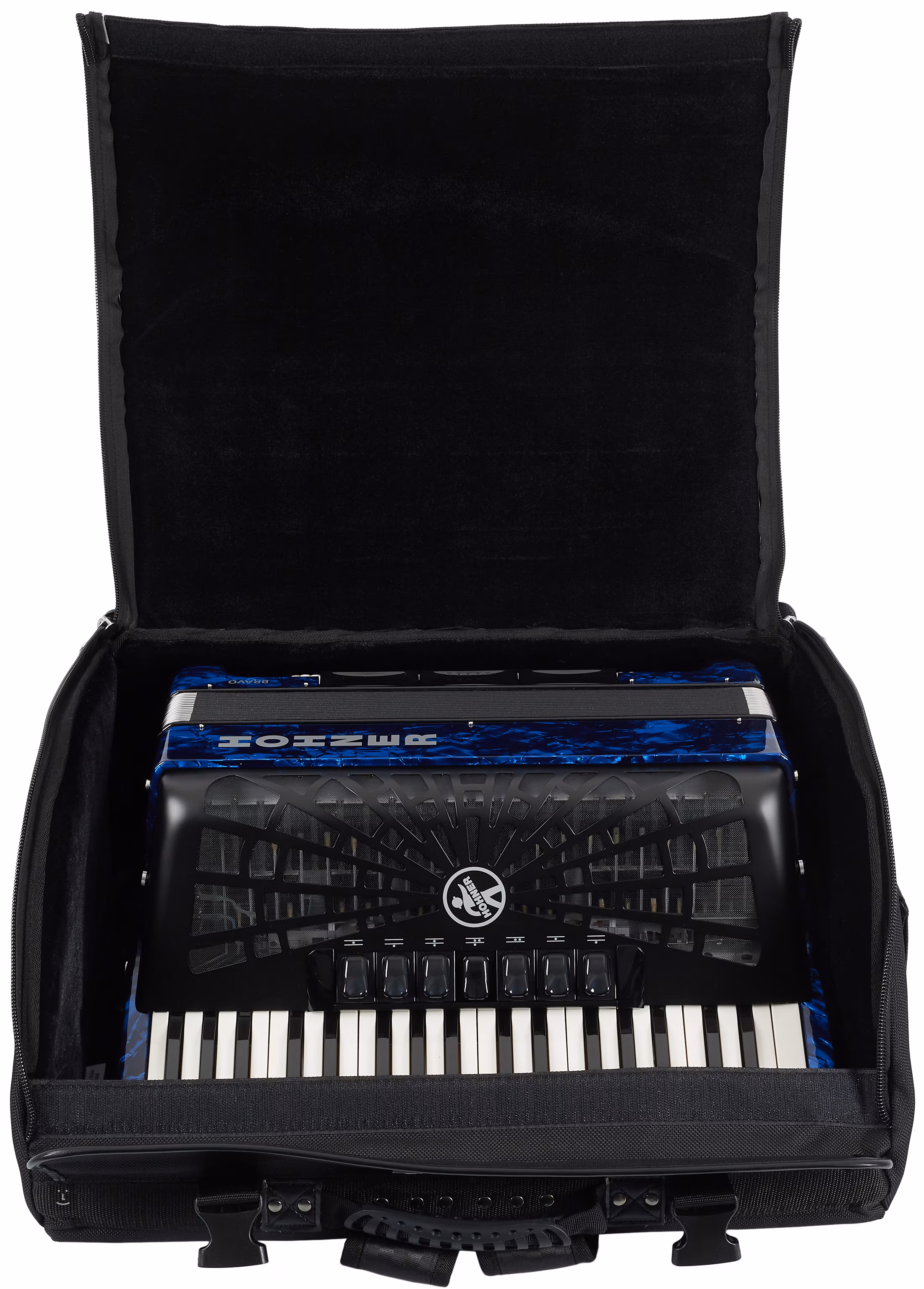 La série Bravo est le choix idéal pour les débutants et les joueurs plus avancés. La fabrication de ces accordéons a fait l'objet de commentaires de la part de professeurs et d'étudiants. Le résultat est un accordéon extrêmement léger pour sa catégorie, avec des caractéristiques et une qualité de fabrication proches de celles des modèles professionnels dont le prix est complètement différent. Ce fait est bien illustré par le mécanisme de clé en T utilisé, qui offre une excellente jouabilité et un contrôle facile de l'instrument.