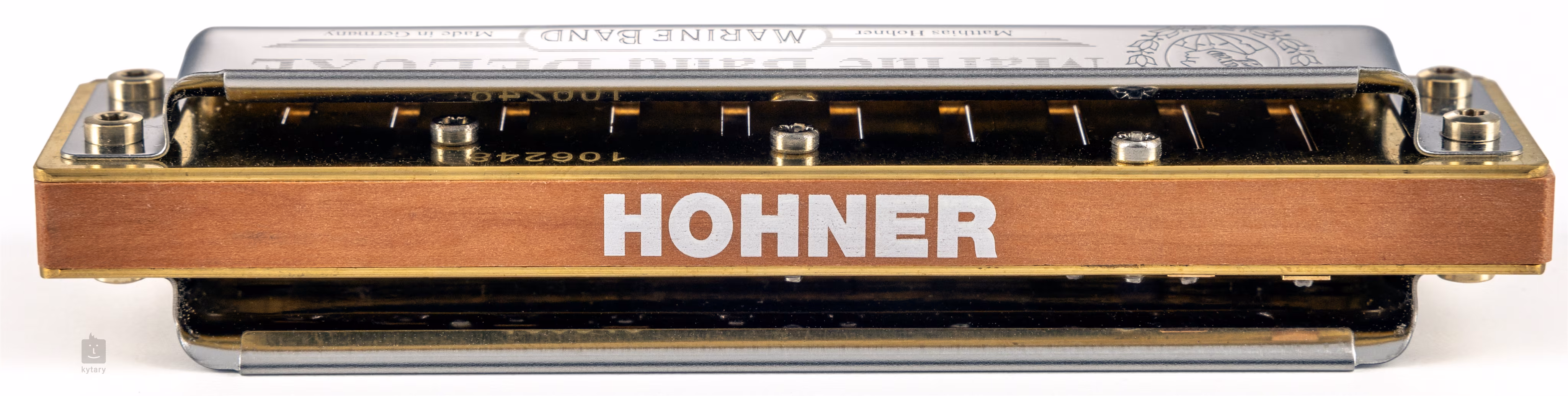 L'harmonica Marine Band Deluxe peut capturer de manière expressive les sentiments humains intrinsèques inhérents au blues. En même temps, il répond aux besoins des musiciens d'aujourd'hui avec des changements de conception qui garantissent un volume encore plus important et une réponse plus rapide de l'harmonica. Le corps de l'harmonica est fabriqué en poirier triplement laqué afin de le protéger contre l'absorption d'humidité et la dilatation. L'harmonica contient des tables d'harmonie en laiton de 0,9 mm d'épaisseur et est recouvert d'une table d'harmonie en acier inoxydable avec des trous latéraux et un dos ouvert. Le son couvre un total de trois octaves.