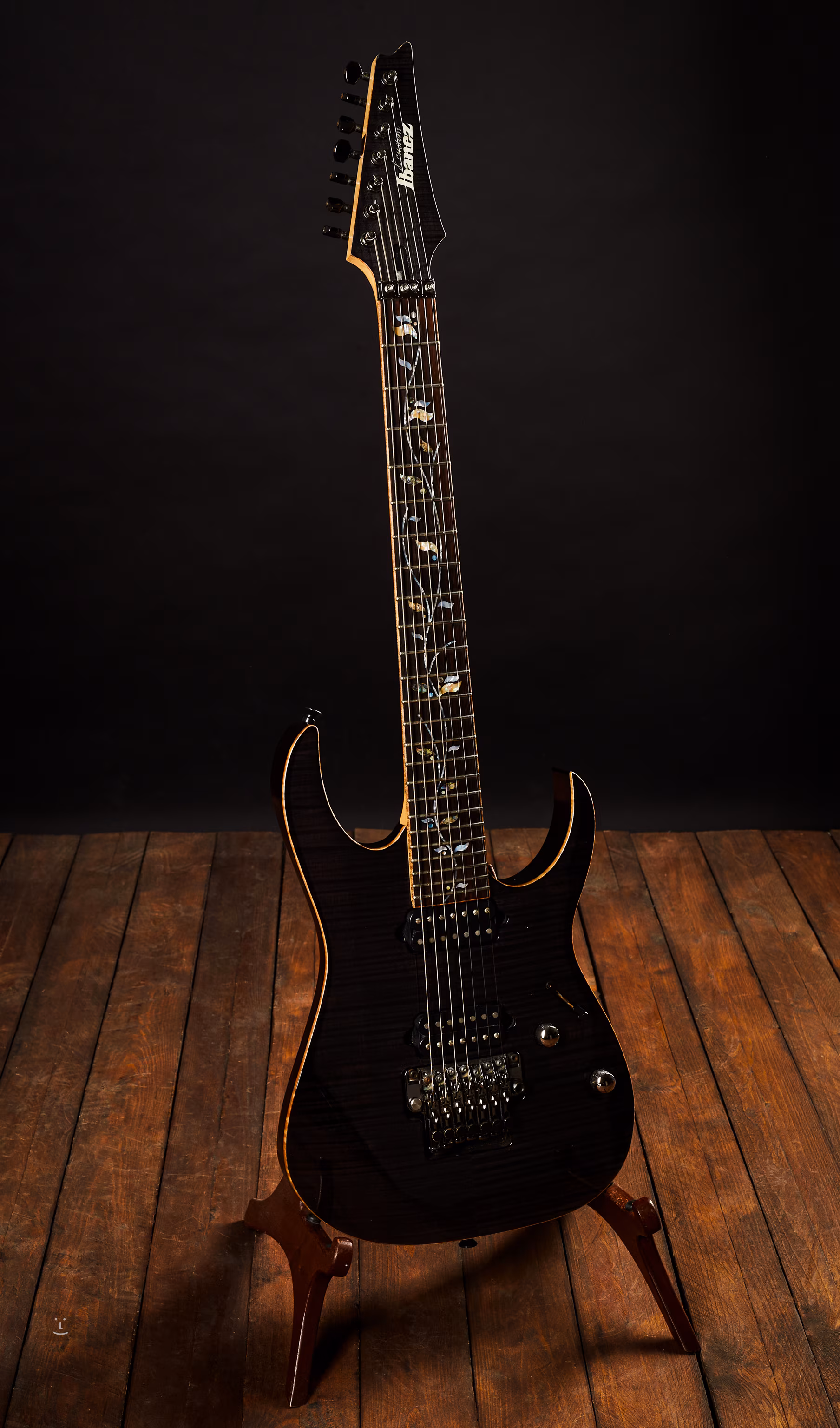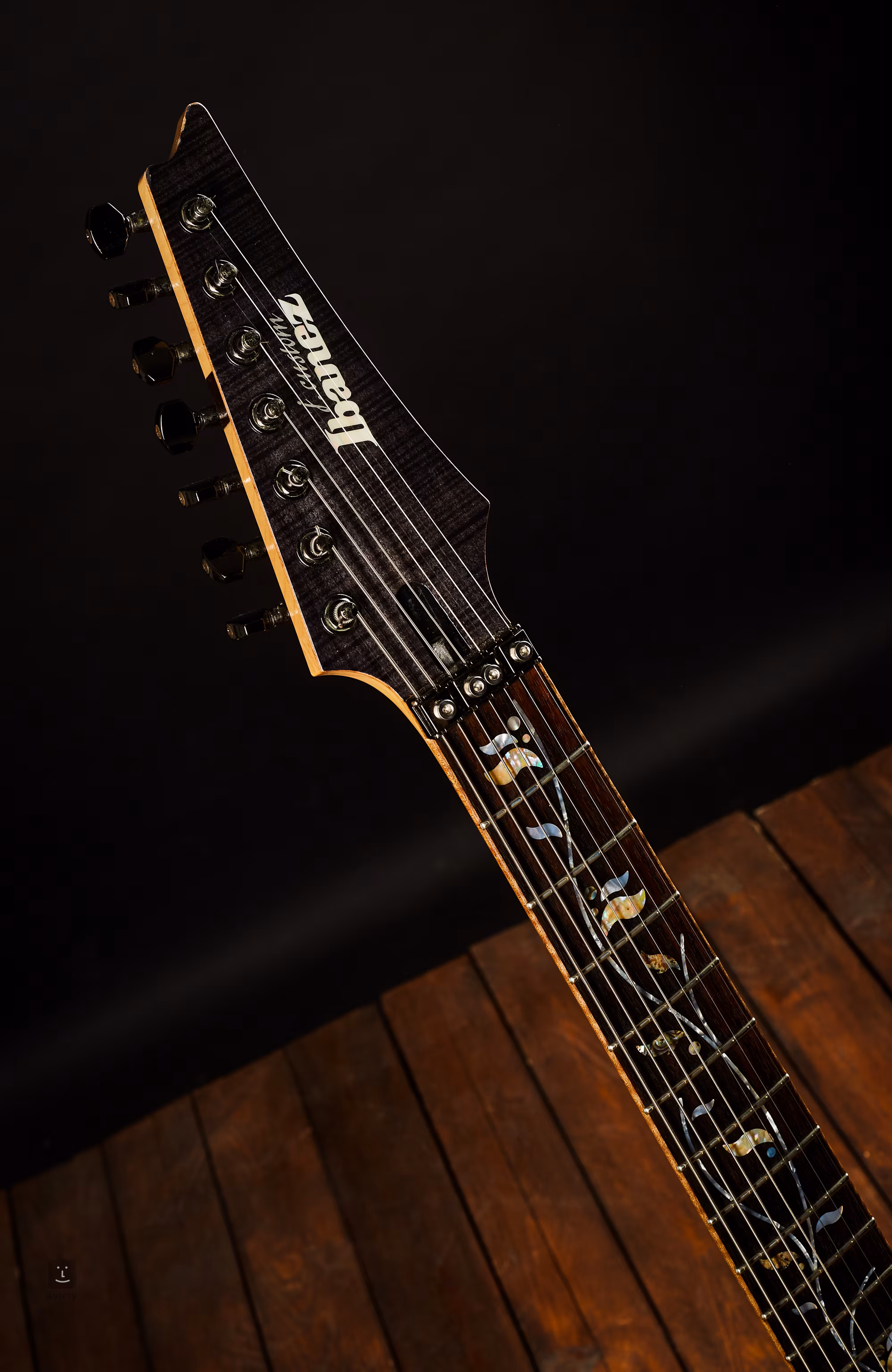 Cette machine à rock à sept cordes provient de l'atelier japonais de customisation du légendaire FugjiGen. La guitare a été assemblée en novembre 2013.