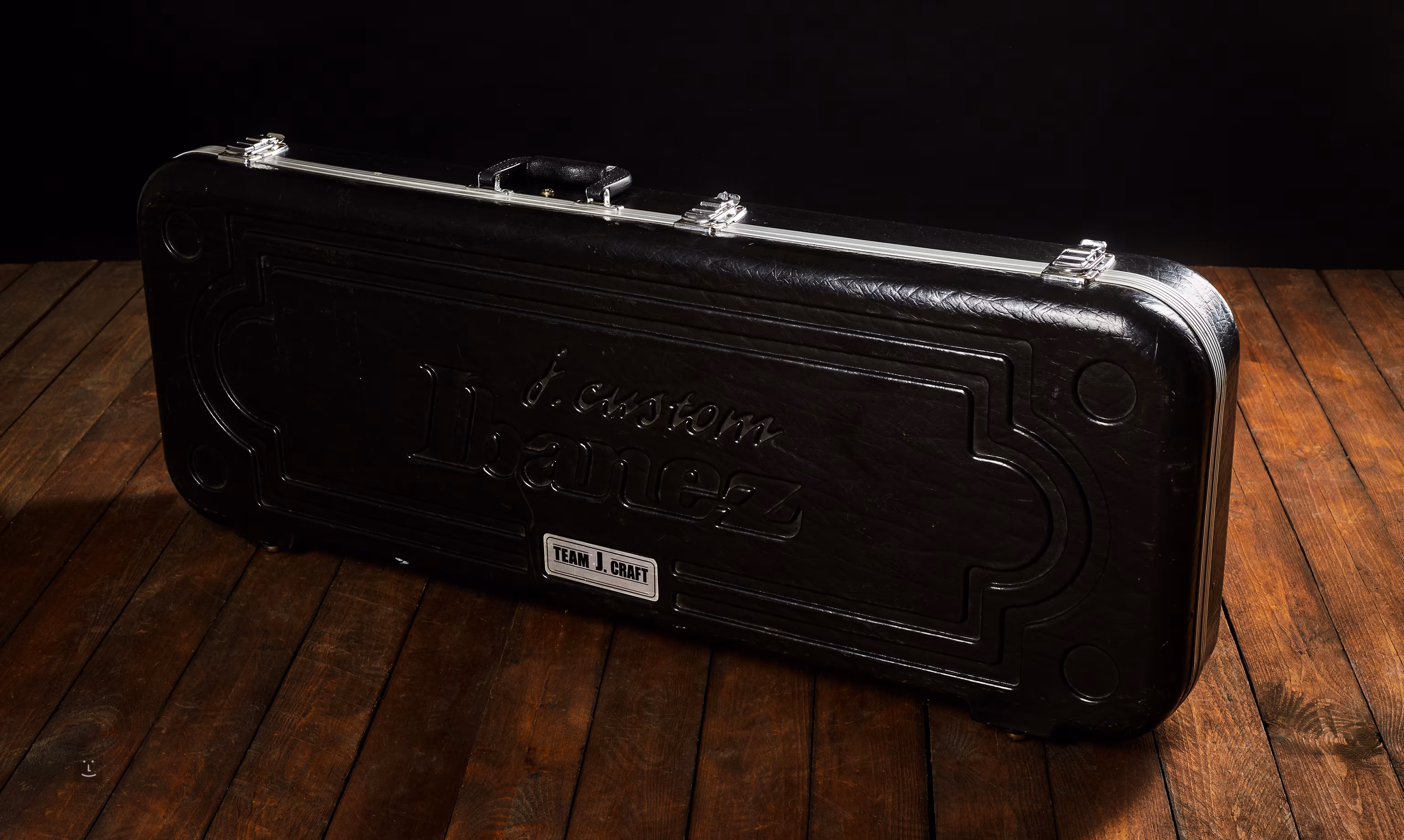 La guitare est en excellent état, avec une rayure importante à l'arrière du corps, et une patine très subtile sur l'accastillage par endroits. Vendue avec l'étui d'origine et le certificat Ibanez Custom en TVA BAZAR.