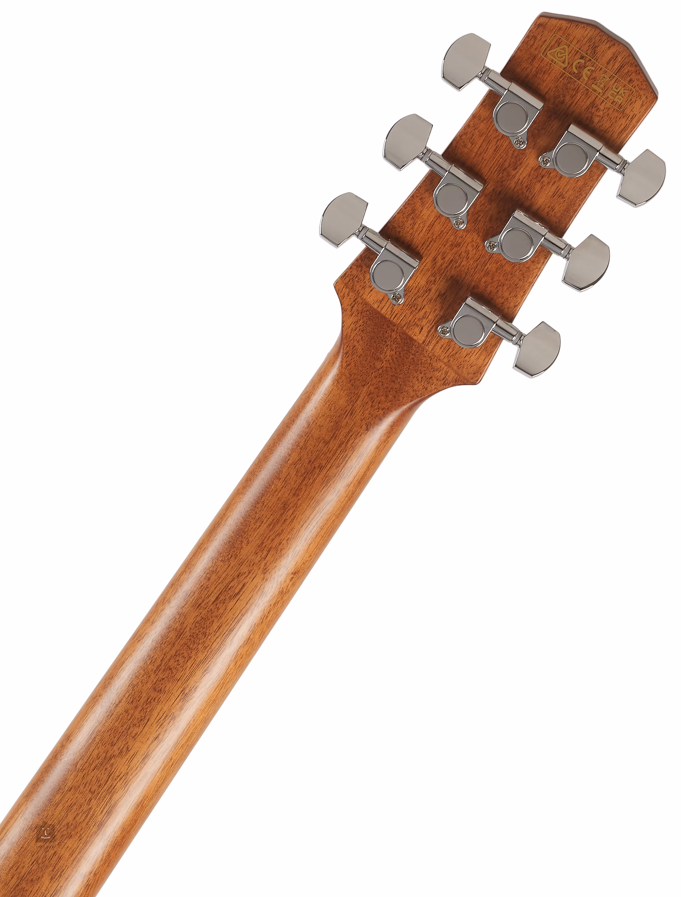 L'avant de l'AAD50CE-TCB est en épicéa de Sitka, tandis que le dos et les éclisses sont en sapelli contreplaqué, un bois visuellement et botaniquement proche de l'acajou véritable. Une touche en palissandre à vingt frettes est collée sur le manche en okoumé. La résonance de la table est soutenue par des nervures X-M modifiées, qui transmettent de manière optimale les vibrations des cordes dans l'ensemble de la caisse. Une profonde découpe du corps (Advanced Access Cutaway) assure une bonne correspondance, même à des positions plus élevées de la touche.
