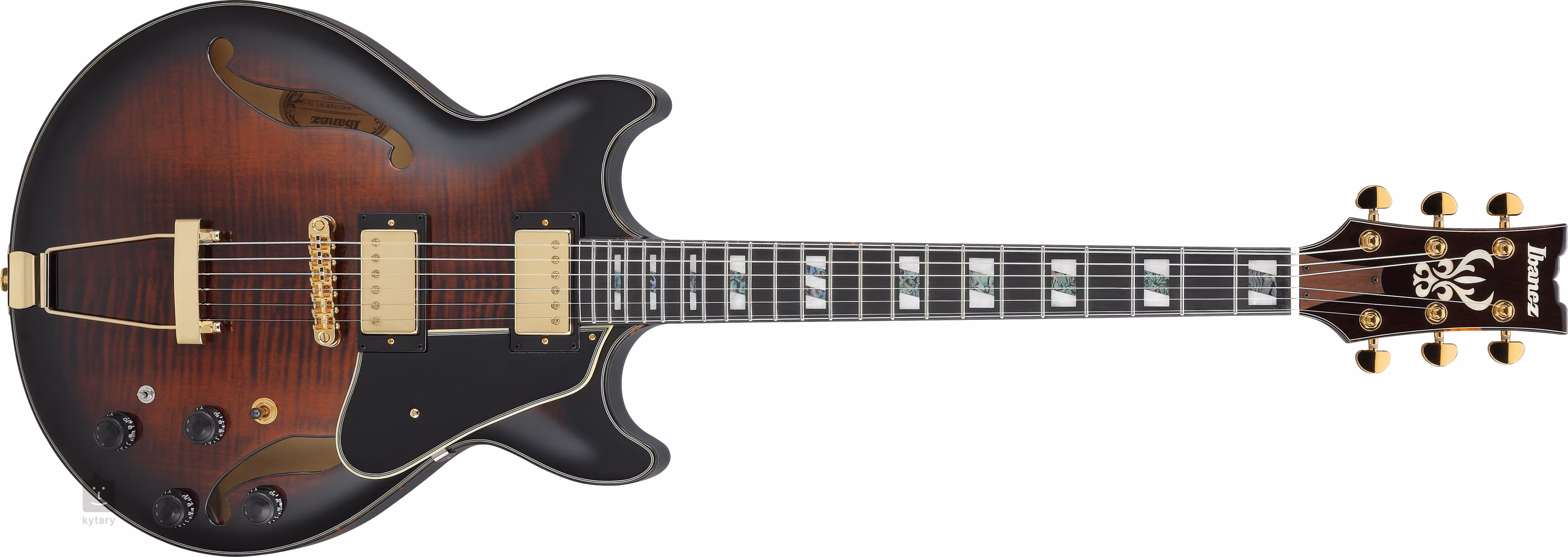 Le corps de l'Ibanez AMH100FM Dark Violin Sunburst présente une histoire parallèle à celle de la musique jazz et des guitares électriques. Il s'agit d'un instrument plus abordable avec un corps plus compact qui conviendra aux joueurs habitués aux corps plus étroits et plus petits des guitares électriques.