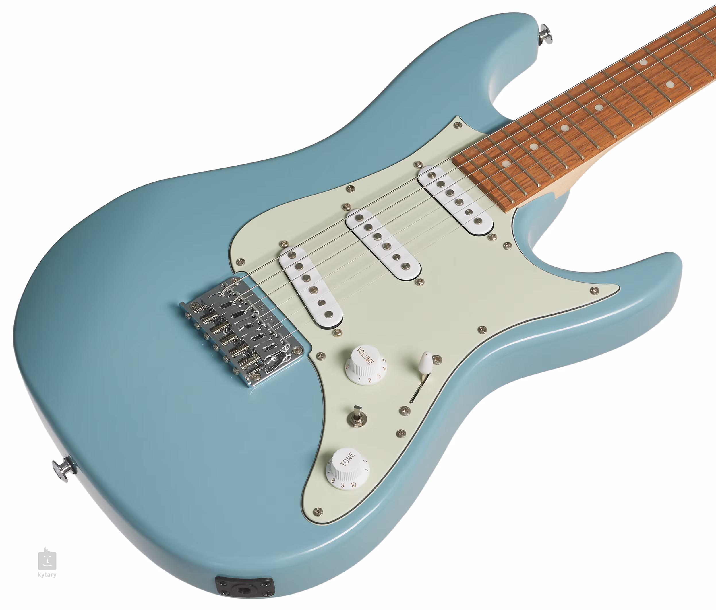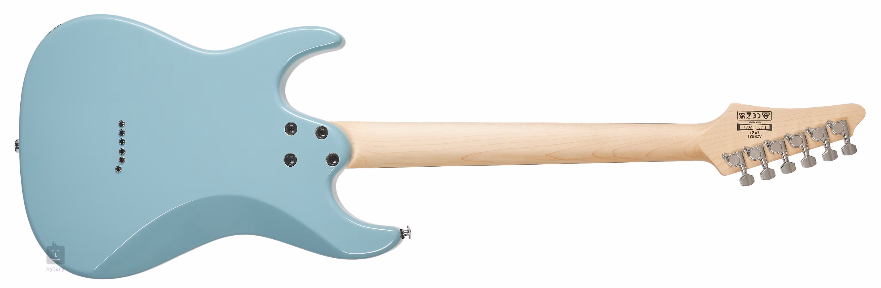Les cordes sont ancrées dans les mécaniques d'accordage moulées sous pression (à arbre divisé) de l'entreprise et passent par un chevalet fixe à travers le corps de la guitare. Le look élégant est accentué par un pickguard pratique et un accastillage chromé.