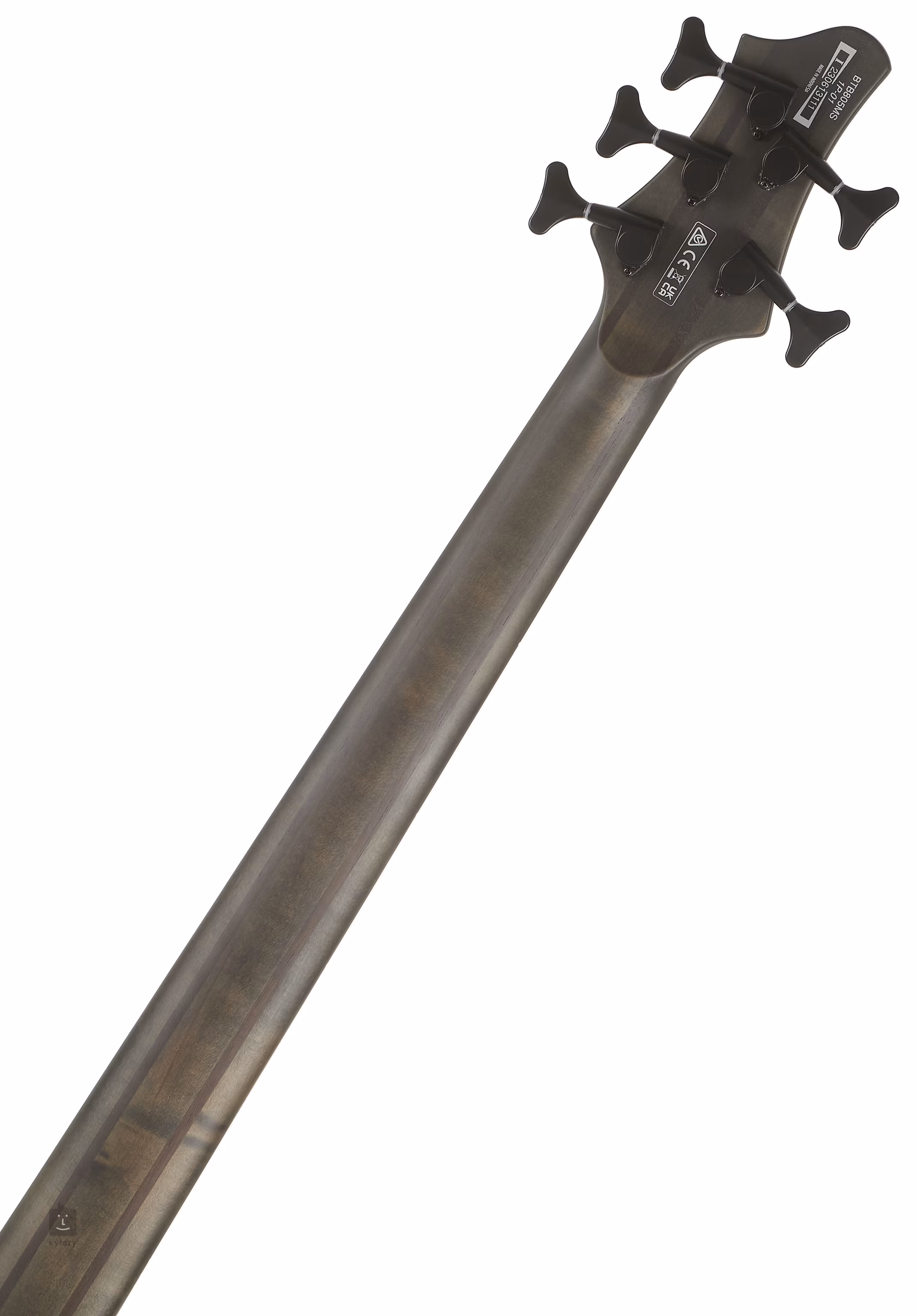 Le corps de cette basse est composé d'une combinaison de frêne et d'okoumé, ce qui confère à l'instrument un son clair et dense avec un grand sustain. La table d'harmonie est ornée d'un placage spectaculaire en loupe de peuplier. Le manche, composé de cinq pièces d'érable et de noyer, est doté d'une touche en bois de panga panga, d'un barrage en graphite et de 24 frettes moyennes en acier inoxydable. Les trous traversants ajoutent du sustain à l'instrument et facilitent l'accès aux positions les plus élevées de la touche. Une autre caractéristique évidente de cette basse est la construction multi-échelle - ou jauge variable - dans la plage 889-940 mm, qui garantit une tension idéale des cordes, même lorsque l'instrument est accordé.