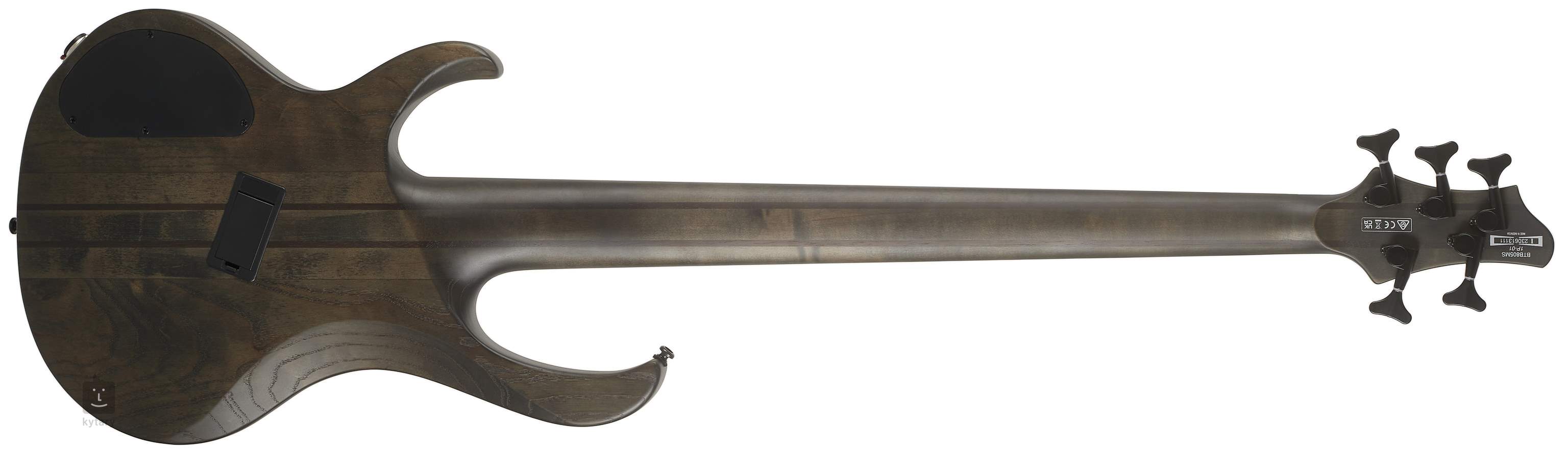 Le corps de cette basse est composé d'une combinaison de frêne et d'okoumé, ce qui confère à l'instrument un son clair et dense avec un grand sustain. La table d'harmonie est ornée d'un placage spectaculaire en loupe de peuplier. Le manche, composé de cinq pièces d'érable et de noyer, est doté d'une touche en bois de panga panga, d'un barrage en graphite et de 24 frettes moyennes en acier inoxydable. Les trous traversants ajoutent du sustain à l'instrument et facilitent l'accès aux positions les plus élevées de la touche. Une autre caractéristique évidente de cette basse est la construction multi-échelle - ou jauge variable - dans la plage 889-940 mm, qui garantit une tension idéale des cordes, même lorsque l'instrument est accordé.