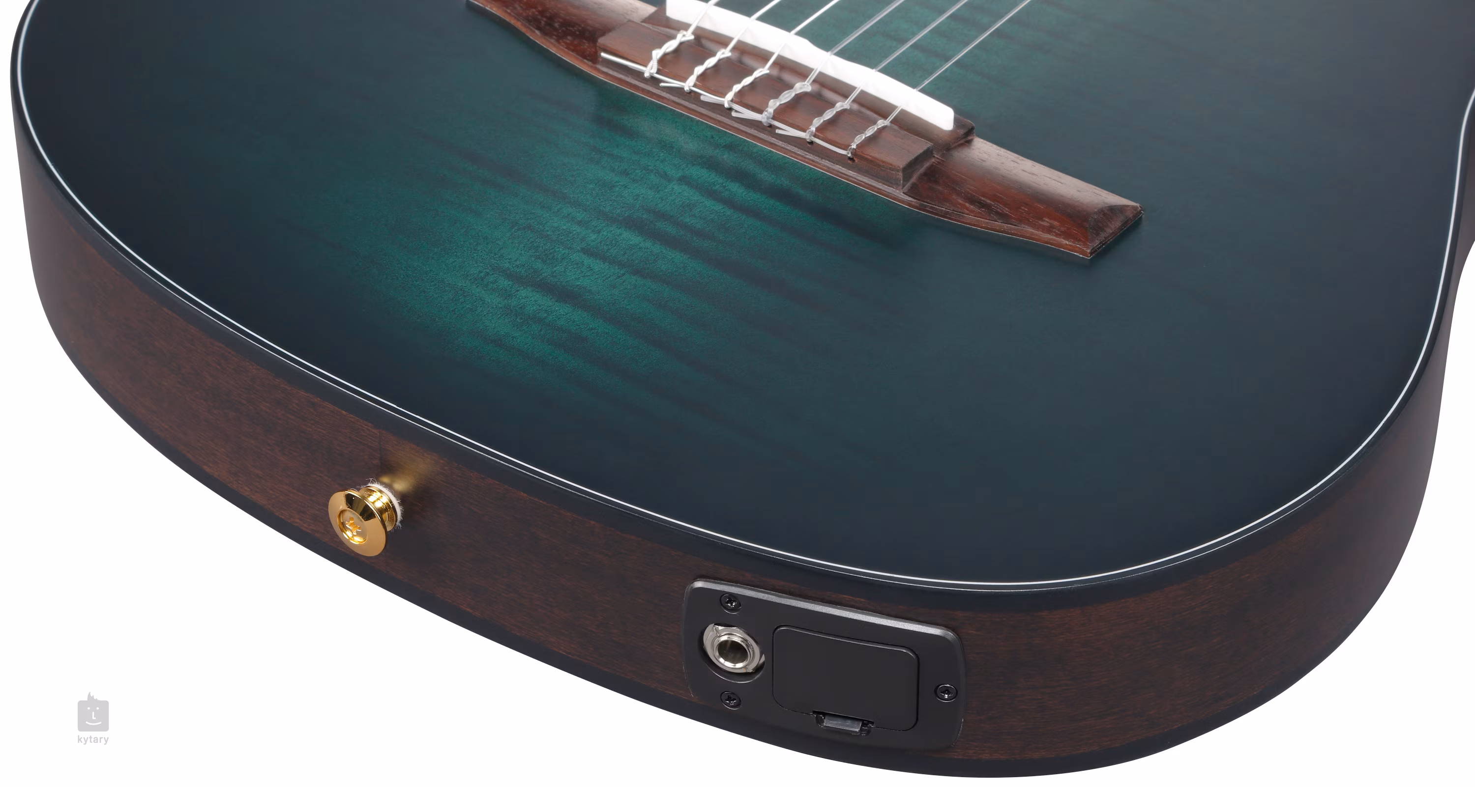 Les guitares électroacoustiques classiques Ibanez FRH sont des instruments modernes qui offrent le son des cordes en nylon et la jouabilité des guitares électriques. Elles offrent un corps compact et étroit, une excellente finition même aux positions de fret les plus élevées, une frette zéro plus étroite (46 mm) et un rayon de frette plus plat (15,75 pouces). Le Side Sound Port permet de mieux percevoir et entendre le son acoustique pur de l'instrument, et la guitare est également beaucoup moins sujette au larsen en raison de l'absence de trou de son sur la table d'harmonie.