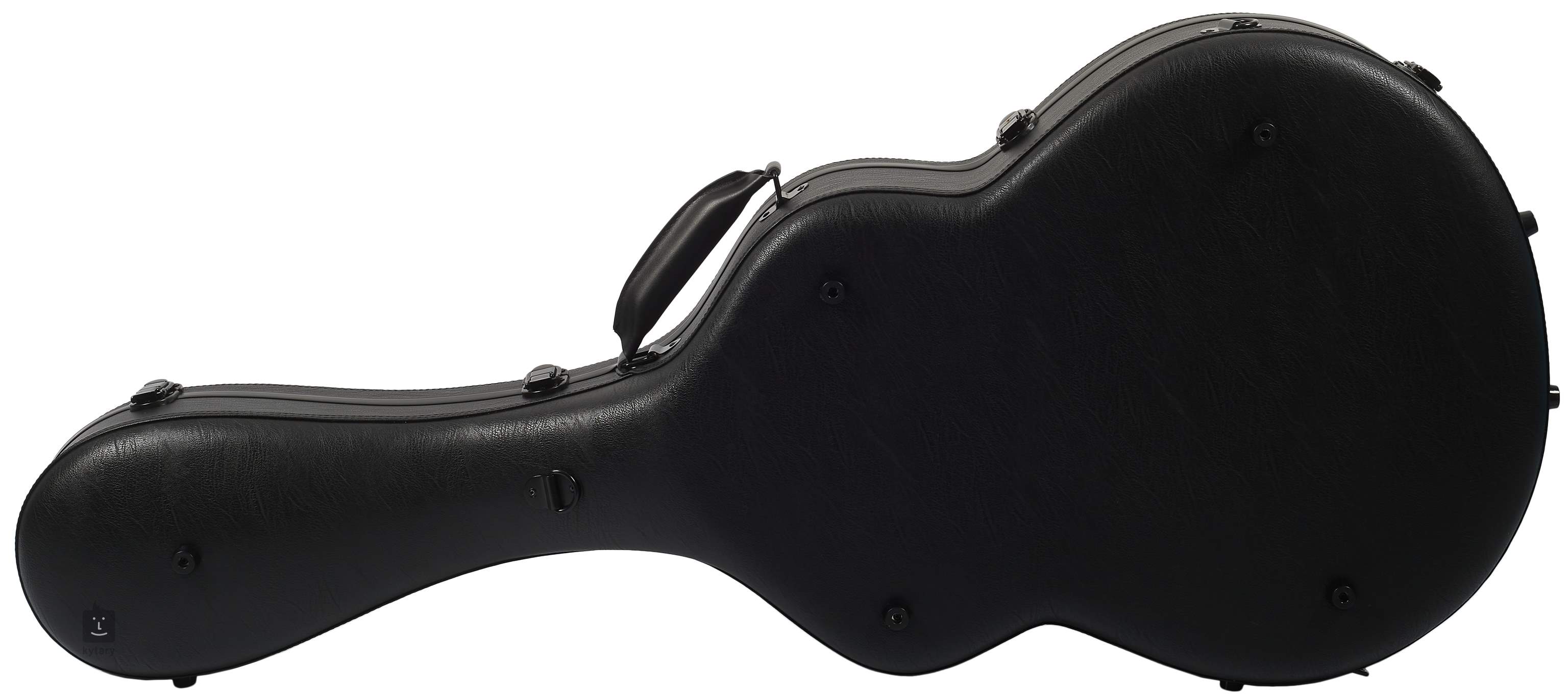 Les deux sorties jack de la guitare offrent à la fois une connectivité stéréo (signaux séparés pour le micro et le micro) et mono. Les cordes sont ancrées par la frette zéro et le sillet en os compensé dans des mouvements Die-Cast chromés avec un rapport de démultiplication de 18:1 et une tête en ébène makassar (pont à chargement par le haut). La finition luxueuse est accentuée par des éléments en bois sous la forme de la bordure du corps, du pickguard et de la rosette.