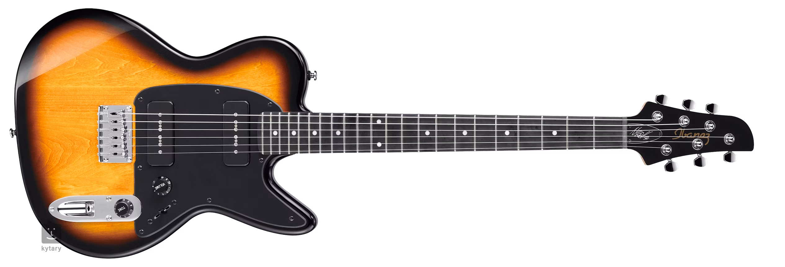 Le caractère de la tonalité peut être réglé de manière standard à l'aide des potentiomètres de volume, du volet de tonalité et du commutateur de micro à trois positions. Les cordes sont montées dans les mécaniques d'accord de la société et une touche solide. L'élégance de l'instrument est accentuée par un pickguard noir, un matériel chromé et une finition sunburst sur la table.