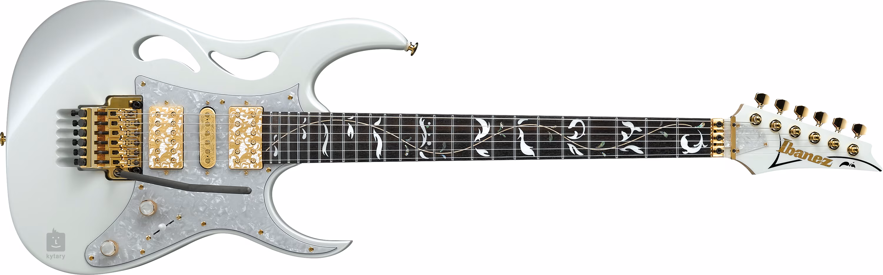 Cette guitare électrique de la marque japonaise Ibanez est le modele signature du célebre magicien de la guitare Steve Vai. Il s'agit d'un instrument haut de gamme qui représente la prochaine étape évolutive dans la gamme des modeles signés Steve Vai.