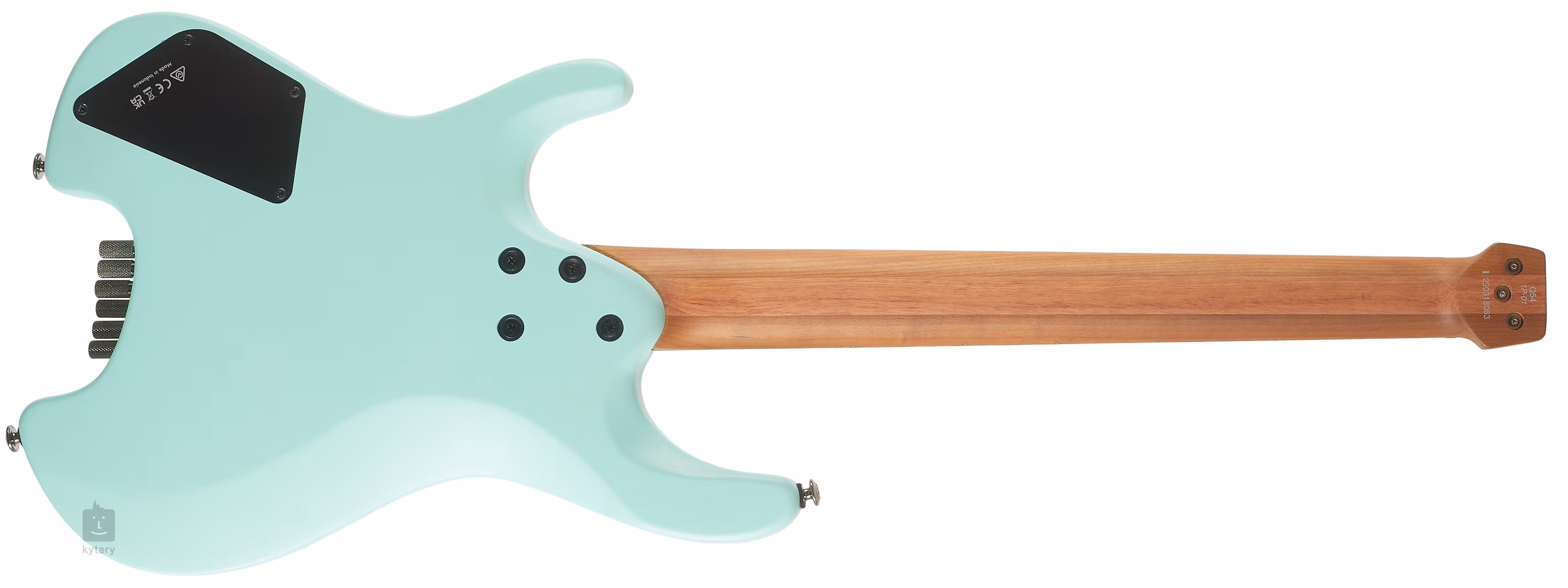 Le corps du Q54 est fabriqué en bois de nyatoh. Sur le manche composé de trois pièces d'érable traité thermiquement (ou, si vous préférez, cuit) et de bubinga exotique est collée une touche en érable greffé (également traité thermiquement) équipée de vingt-quatre frettes Jescar EVO Gold. L'orientation sur la surface de la touche est facilitée par la position des perles et les points luminescents latéraux.