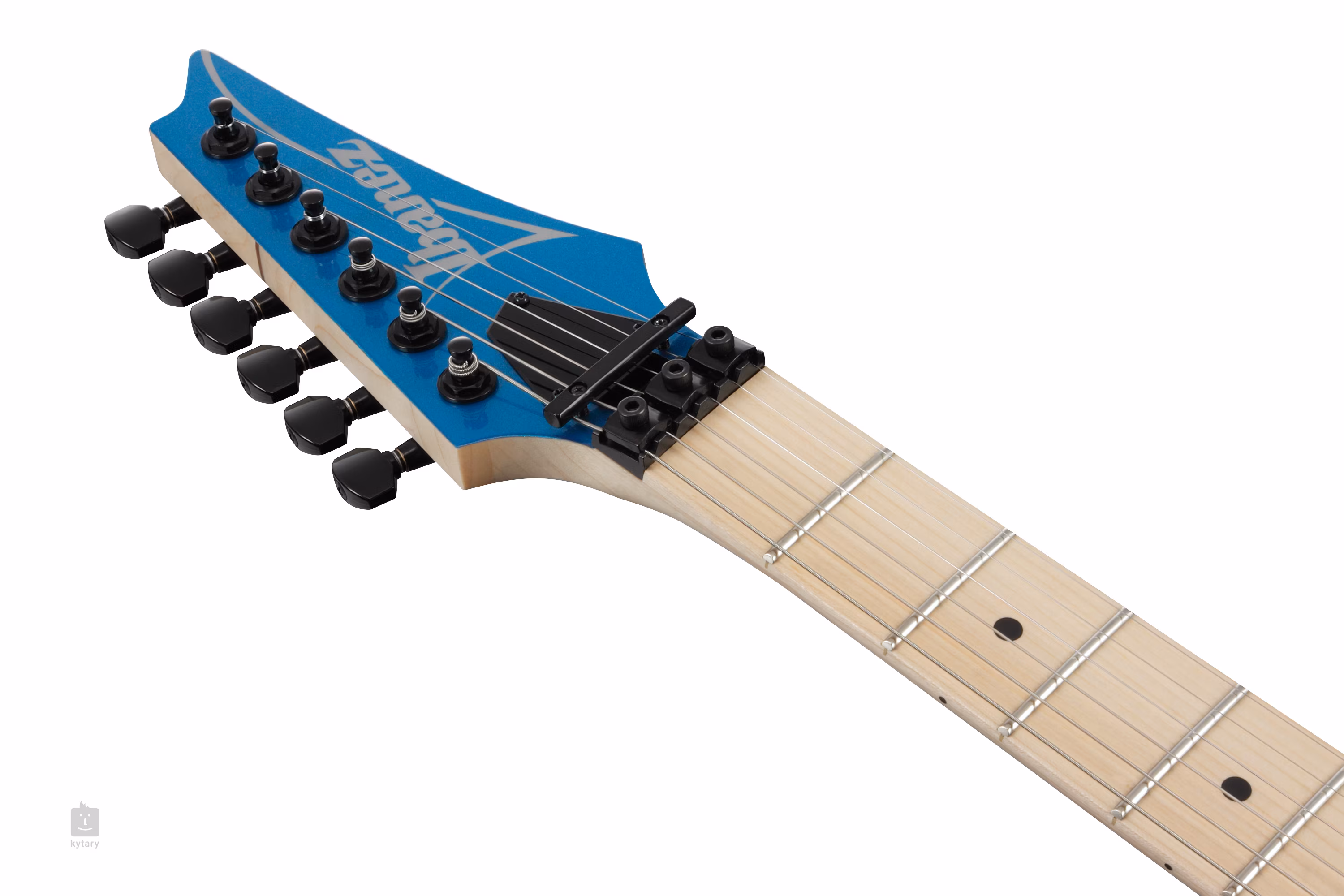 Le corps de la guitare électrique RG550 EB est en tilleul. Un manche en cinq parties en érable et en noyer est collé à une touche en érable munie de 24 frettes géantes. Le profil plat du manche Super Wizard HP est idéal pour le shred rapide. L'orientation sur la touche est facilitée par des points de positionnement noirs.