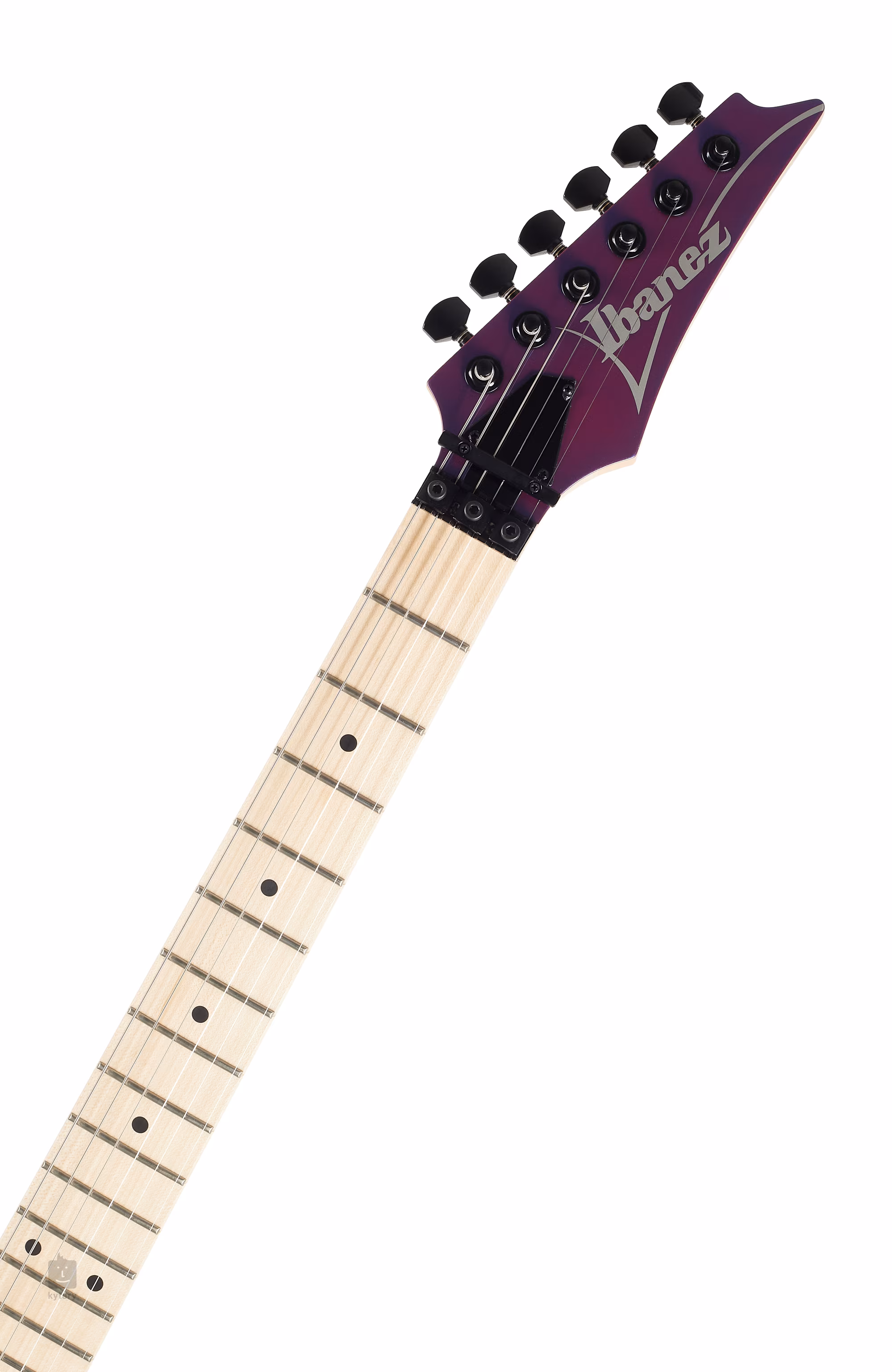 La combinaison de deux humbuckers passifs Vintage 7 et 8 (conçus par DiMarzio, fabriqués par Ibanez) en position chevalet et manche avec des micros S1 a simple bobinage confere a la guitare un équilibre sonore et une palette tonale allant de sons cristallins a une distorsion a haut gain. Un commutateur a cinq positions permet de passer de l'un a l'autre. Les cordes sont montées dans des mécaniques noires d'un côté et un trémolo Edge a double tour de l'autre, que vous utilisez pour agrémenter votre jeu d'effets sonores impressionnants. Les verrous sur la frette zéro garantissent la stabilité de l'accord lorsque vous utilisez fréquemment le levier de trémolo. Une protection noire protege la peinture de l'instrument contre les rayures causées par le médiator.