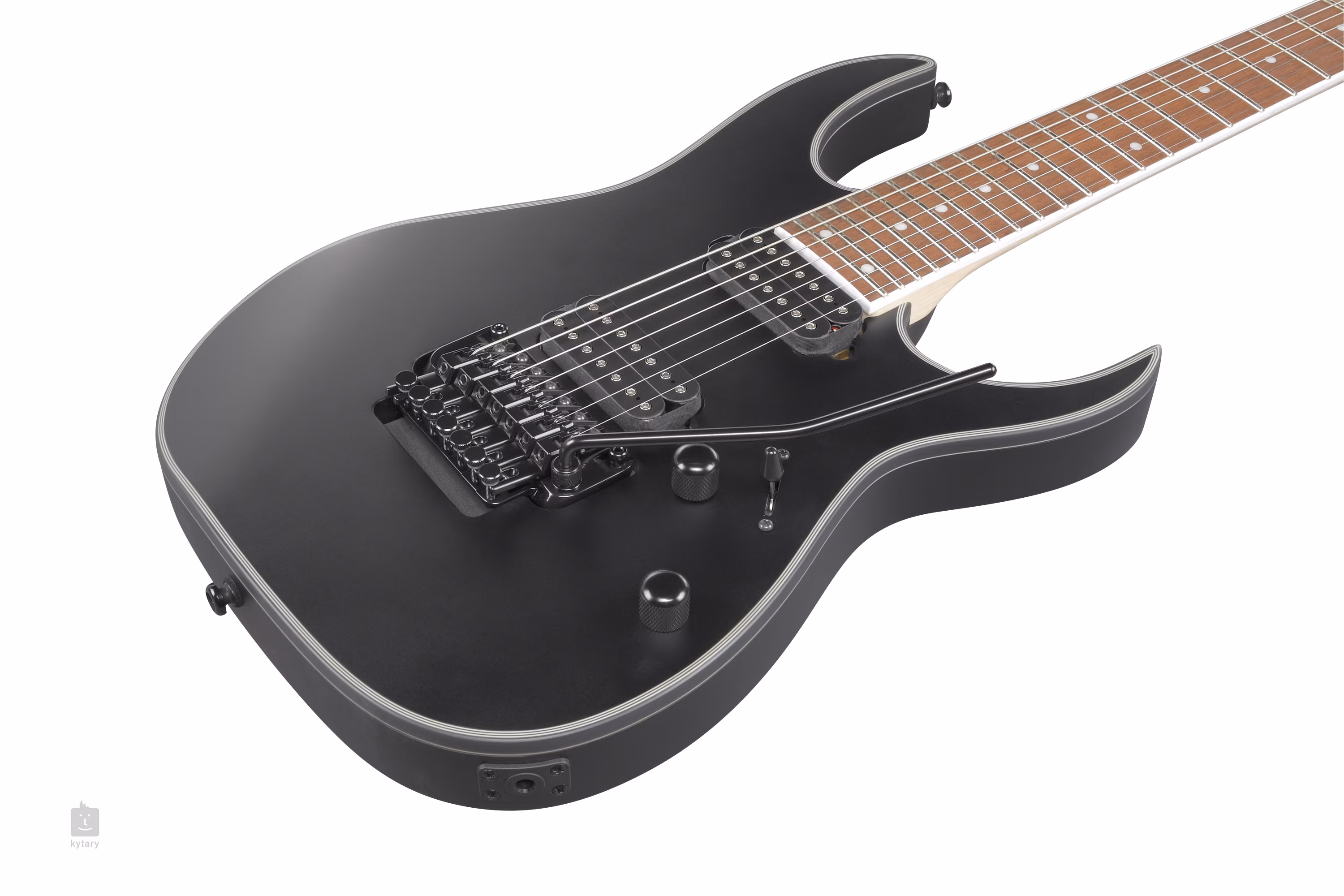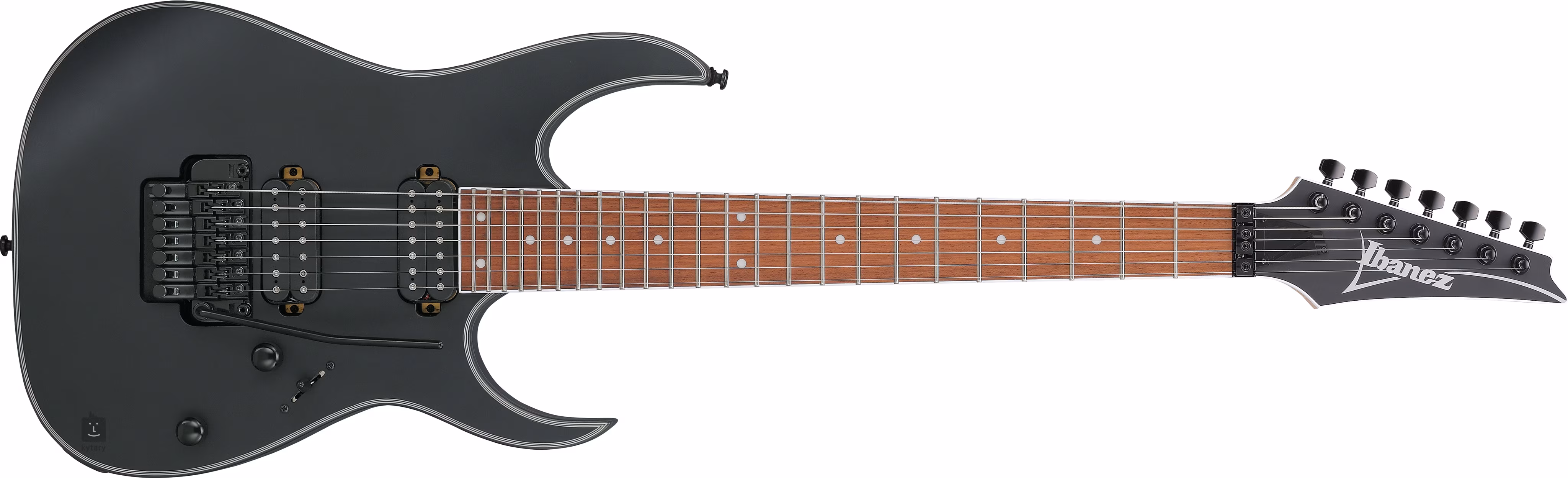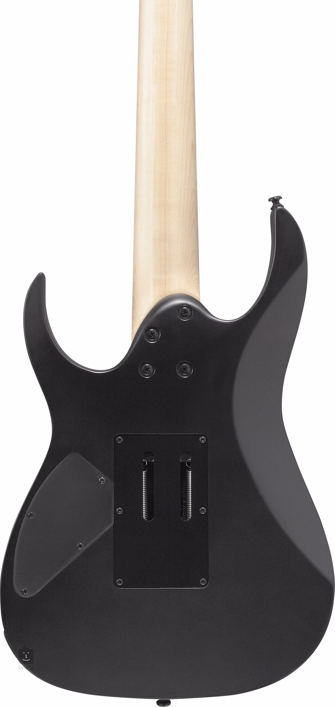 Le corps de la RG7420EX-BKF est en méranti. Le manche en érable rapide avec profil Wizard II-7 est collé à une touche en jatoba dotée de vingt-quatre frettes géantes. Des points de positionnement sur la touche facilitent l'orientation.