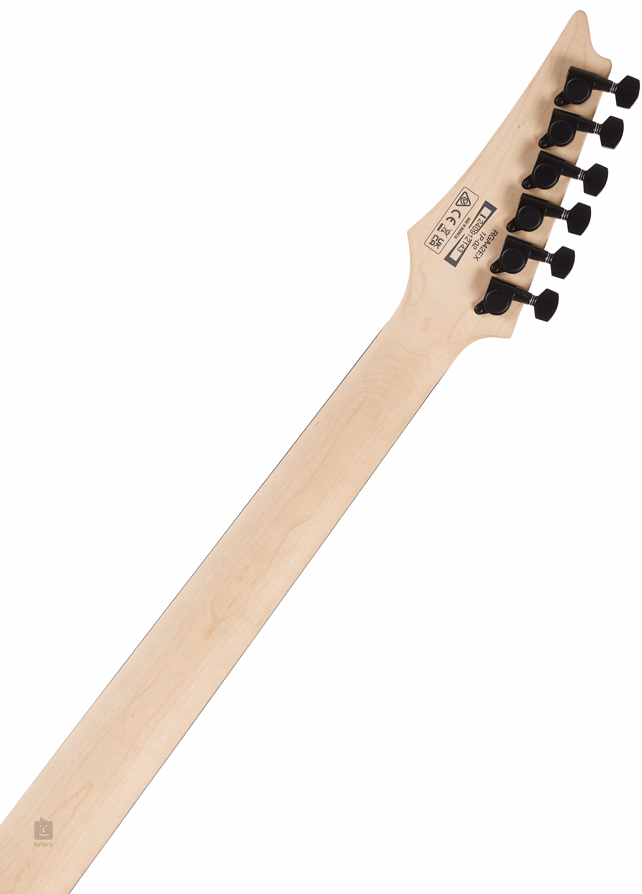Le corps du RGA42EX-BAM est fabriqué en meranti. Le manche rapide en érable avec profil Wizard III est collé a une touche en jatoba, un bois également connu sous le nom de cerisier brésilien, équipée de vingt-quatre frettes jumbo-size. Les points de position décalés blancs permettent de se repérer facilement sur la touche.