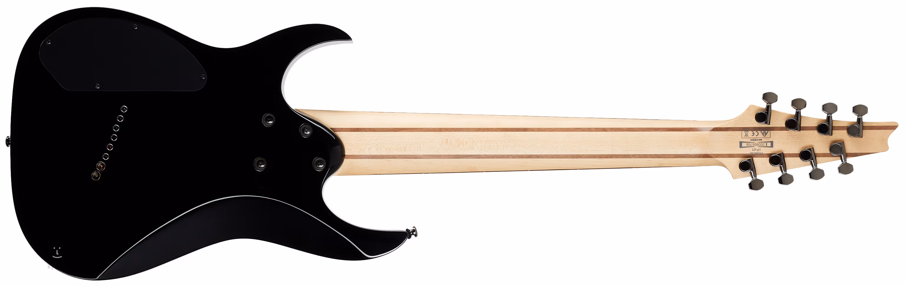 Deux humbuckers d'entreprise passifs IBZ-8 avec aimants en céramique donnent a cette guitare a huit cordes un son profond et clairement articulé. Le manche en cinq parties en érable et noyer de la Wizard II-8, avec son profil étroit et plat, est idéal pour un jeu rapide. L'écartement plus long du manche est particulierement adapté aux accords inférieurs. La touche en jatoba, appelé cerisier brésilien, est équipée de frettes jumbo-size et de points de position blancs. La stabilité de l'accordage est assurée par la fixation des cordes dans la poupée massive et les mécanismes noirs.