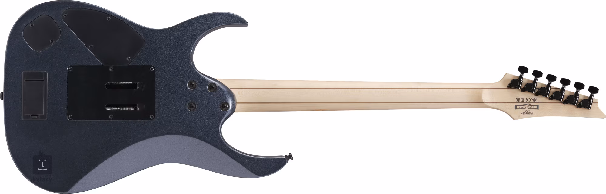 Le corps de la RGR6BSP-IPT est en bois de nyatoh. Une touche en ébène dotée de vingt-quatre frettes géantes est collée à un manche rapide en cinq parties en érable et en noyer avec un profil Wizard III. L'orientation sur la touche, même dans la pénombre, est facilitée par des points luminescents sur le côté.