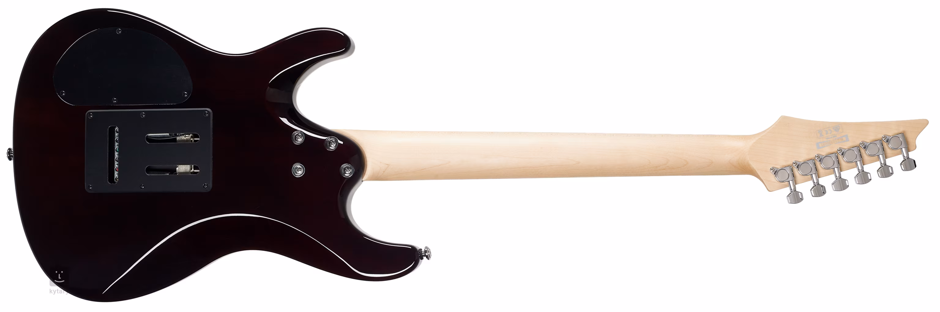 Le corps de l'instrument, fabriqué en okoumé africain, est décoré d'un placage d'érable flammé et d'une reliure blanche. A côté du manche en érable se trouve une touche en bois de jatoba, appelé cerisier brésilien, équipée de frettes de taille moyenne et de reperes de position blancs. Les cordes sont logées dans un trémolo synchronisé a simple bobinage T102, que vous utilisez pour agrémenter votre jeu d'effets sonores impressionnants. Le look de l'instrument est rehaussé par le matériel et le logo chromés sur la tete.