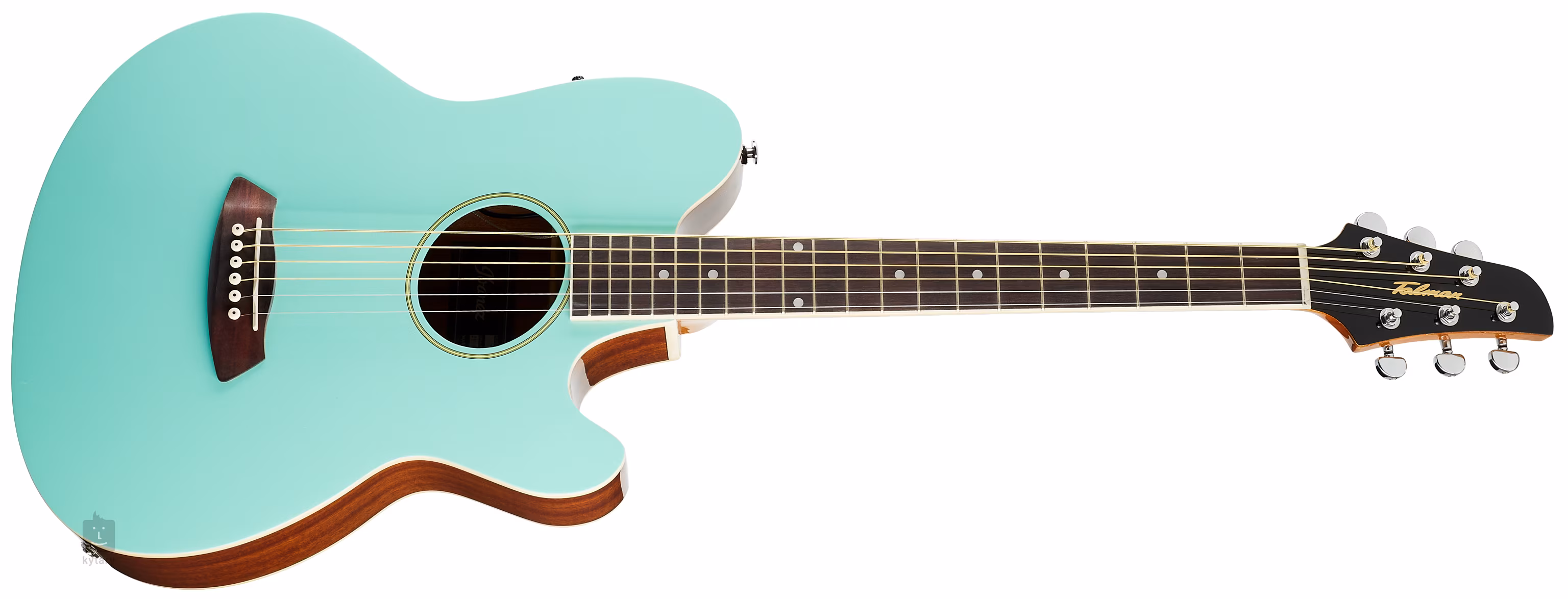 Cette guitare représente l'une des formes spécifiques des guitares acoustiques Ibanez. Talman possede les avantages des instruments électroacoustiques sous la forme d'un corps a soufflet résonnant, qui se combine avec le design et le confort de jeu des guitares électriques (design du corps a double coupe, forme de la tete, profil du manche).