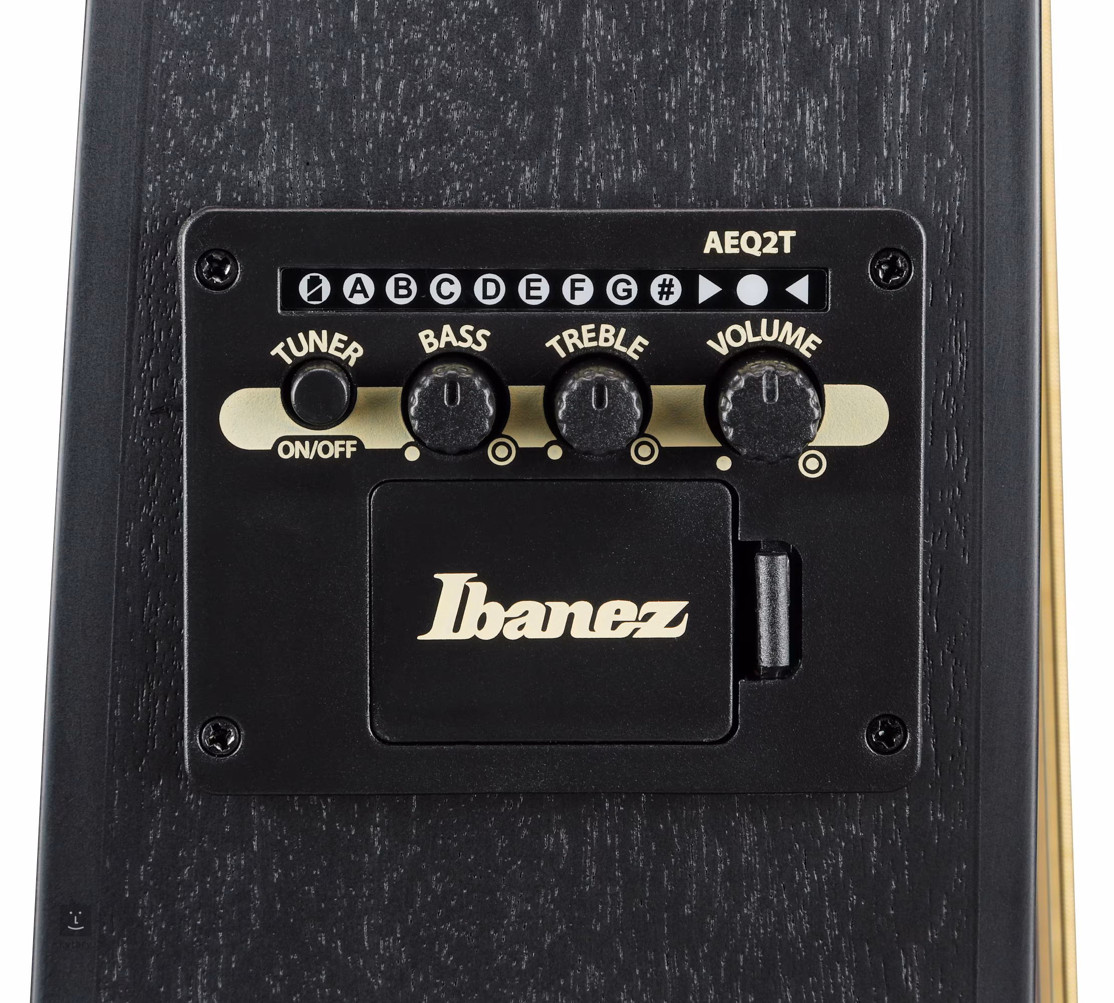 La sonorité de l'instrument est assurée par un micro piézo subcubique et un préamplificateur Ibanez AEQ-2T avec un égaliseur à deux bandes et un accordeur intégré. Les cordes sont montées sur des mécaniques noires moulées sous pression et une tête en purpleheart. Les chevilles Ibanez Advantage offrent les avantages d'une manipulation facile et d'un ajustement solide des cordes par rapport aux modèles standard.