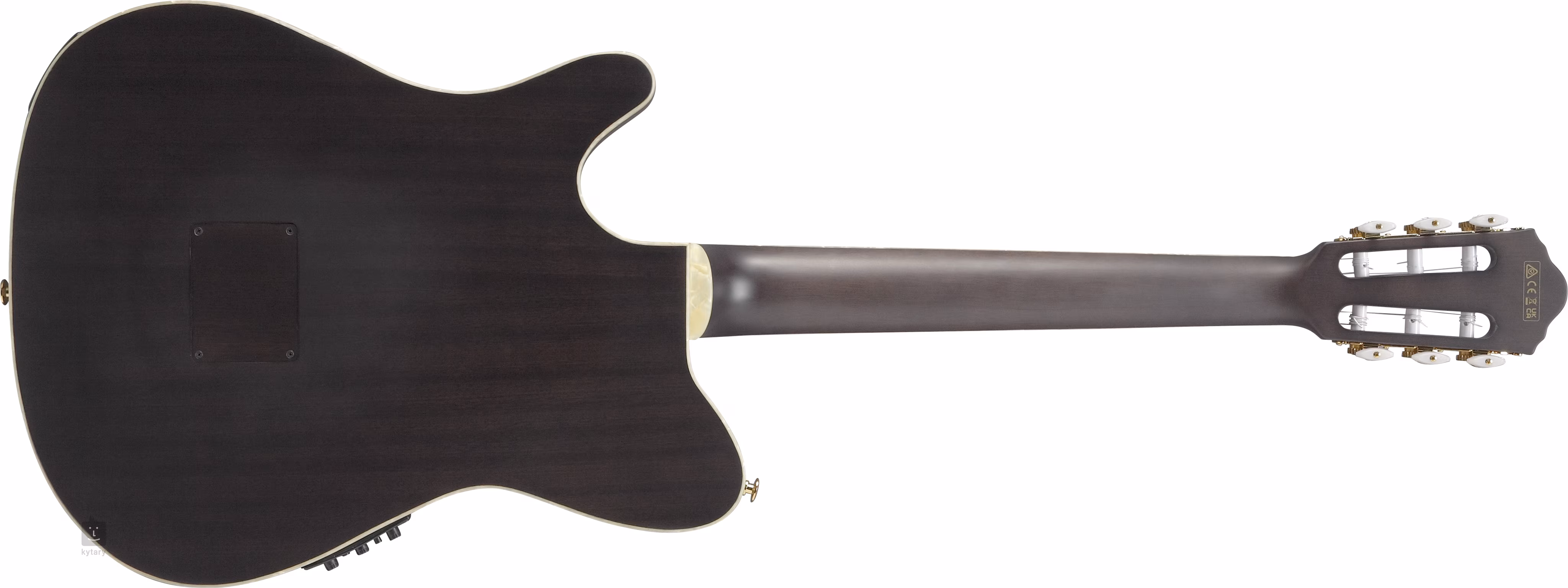 Le manche en nyatoh est collé à une touche en noyer avec vingt-deux frettes. Une frette zéro plus étroite et un rayon de touche plus plat offrent une adaptation plus facile et une bonne jouabilité, même pour les musiciens habitués aux dimensions des guitares électriques. La surface de la touche est décorée d'une incrustation de perles "Tree of Death". Les cordes sont ancrées dans des mécaniques traditionnelles "fendues" en finition or et touche en noyer. La belle finition est accentuée par la reliure du corps en nacre imitation double face.