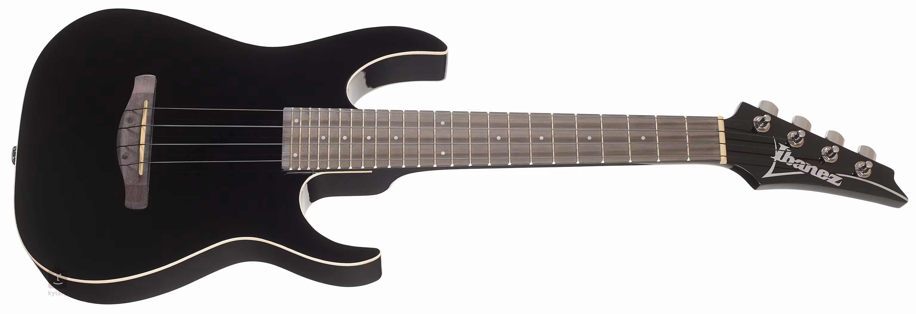 L'ukulélé électroacoustique Ibanez URGT100-BK, de taille ténor, est une adaptation réduite à quatre cordes des célèbres guitares électriques Super ST d'Ibanez.
